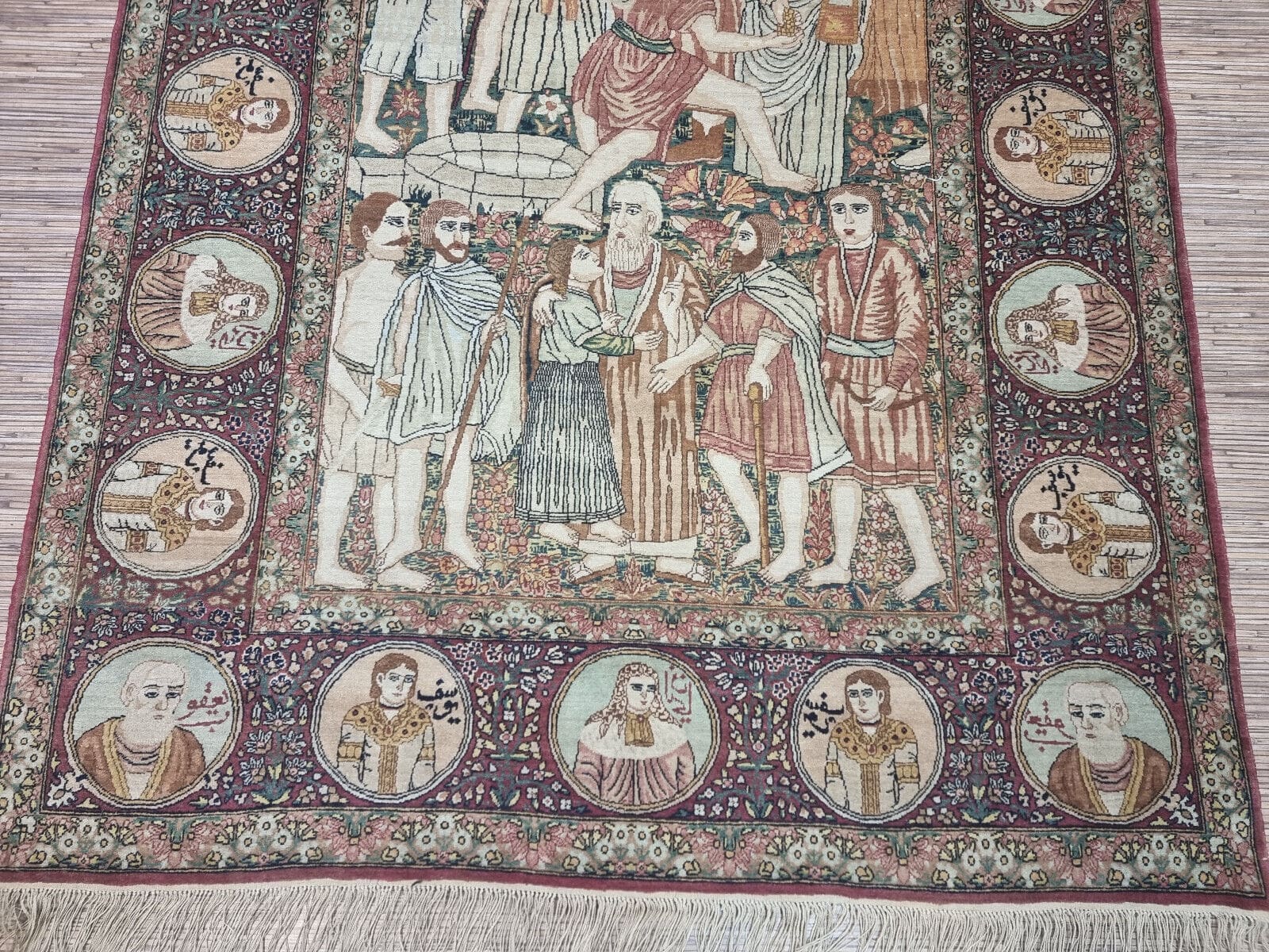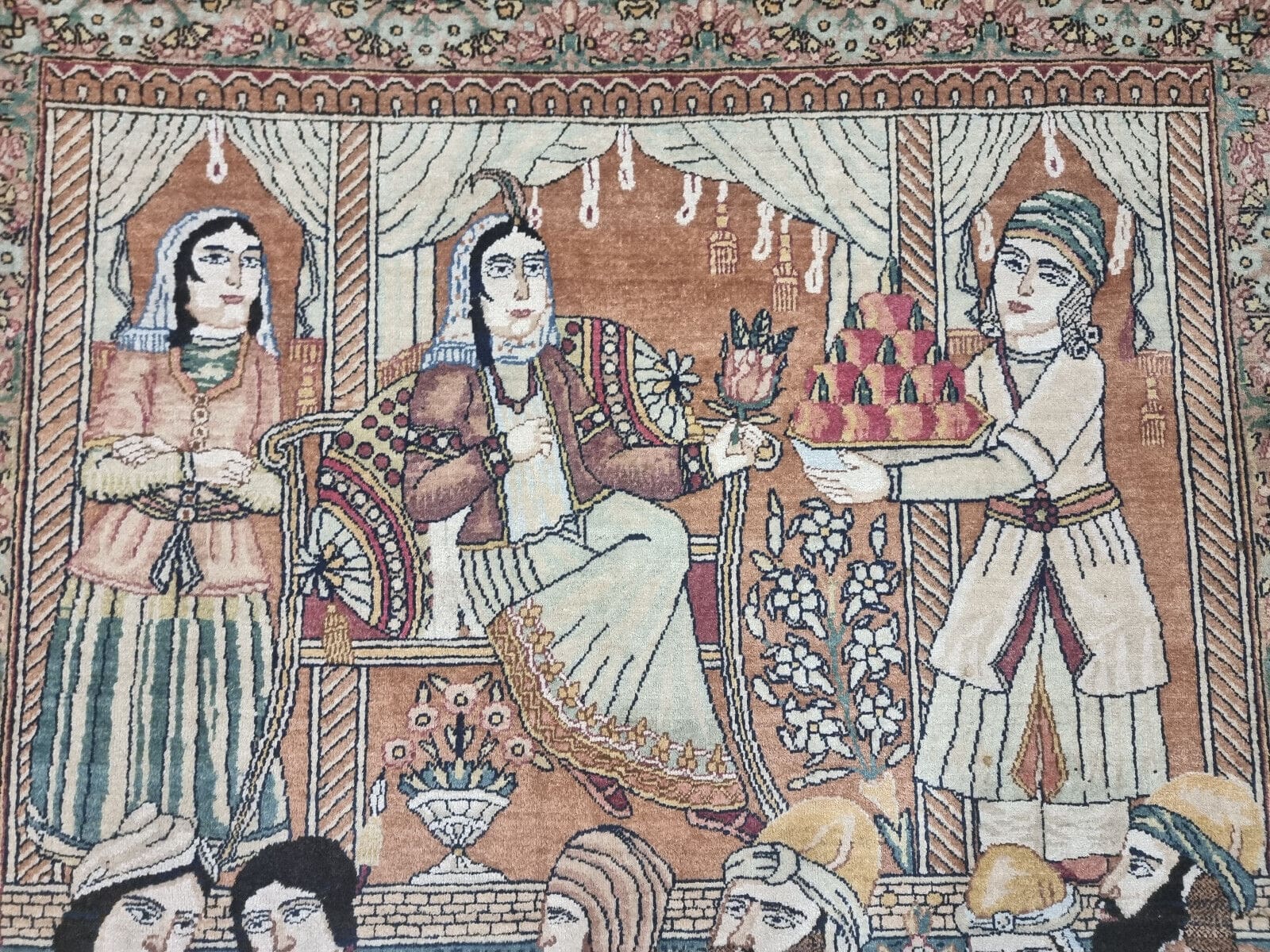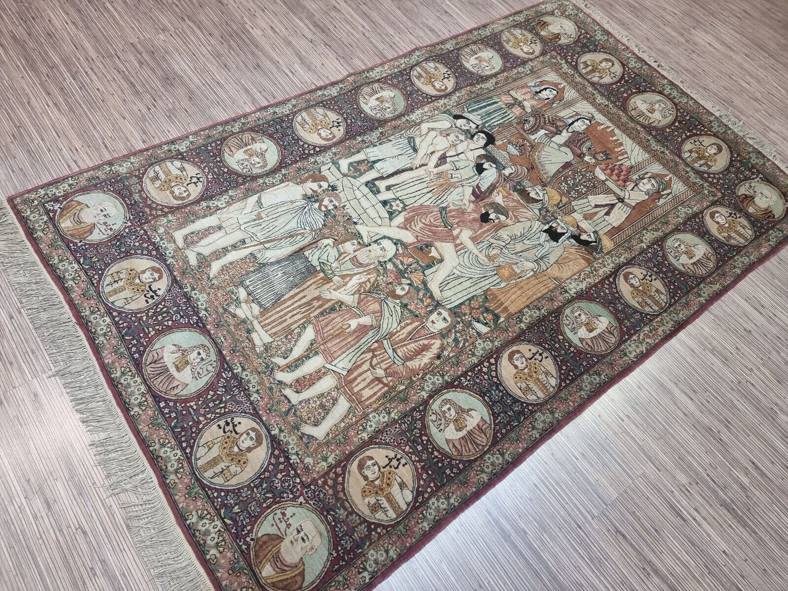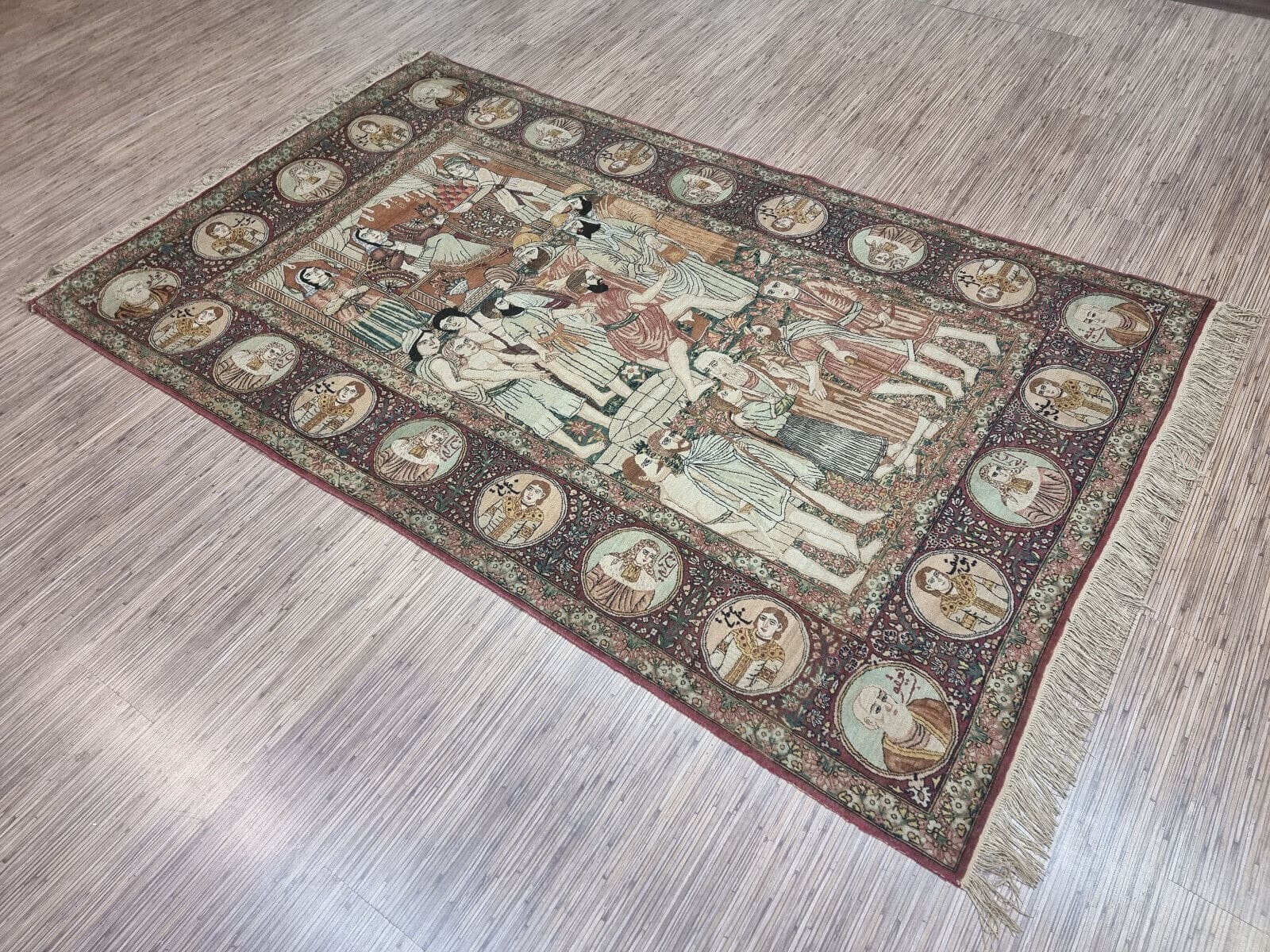Dieser Teppich ist handgeknüpft, was bedeutet, dass jeder Knoten individuell von erfahrenen Kunsthandwerkern gesetzt wurde. Die Knotendichte ist außergewöhnlich hoch, was sowohl die Qualität als auch die Detailtreue der Muster unterstreicht. Diese Technik ermöglicht eine genaue Umsetzung komplexer Designs, die über Generationen hinweg weitergegeben wurden.