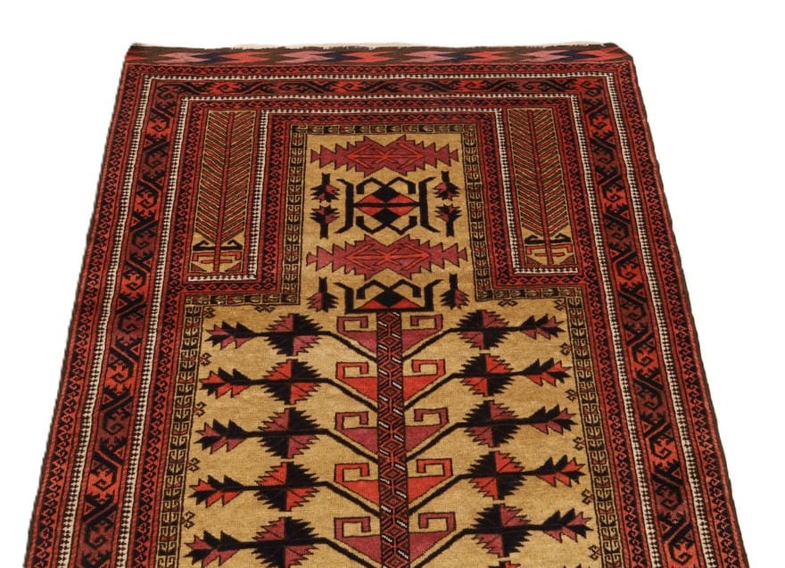 Handgeknüpfter Belutsch Teppich | Knotendichte: 128.000 – 160.000 Knoten/m² | Material: Hochwertige Schurwolle auf Baumwollgrund | Größe: 142×99 cm | Zustand: Neuzeitlich (0-20 Jahre) | Ursprung: Iran/Persien | Muster: Tribal Lebensbaum in warmen Naturtönen | Pflegeleicht und robust | Gewicht: ca. 5 kg