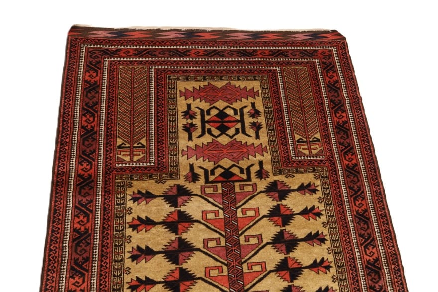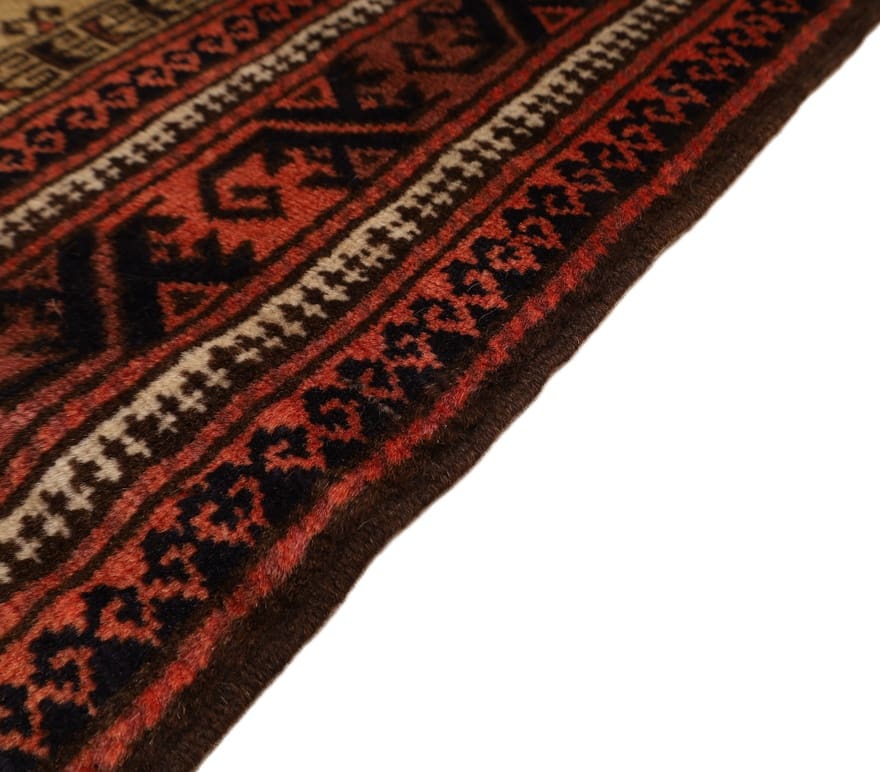 Der Original Belutsch Teppich besticht durch seine hochwertige handgeknüpfte Verarbeitung, die Verwendung erstklassiger Materialien sowie das faszinierende tribal Muster, das tief in der Kultur des Belutsch-Volkes verankert ist.