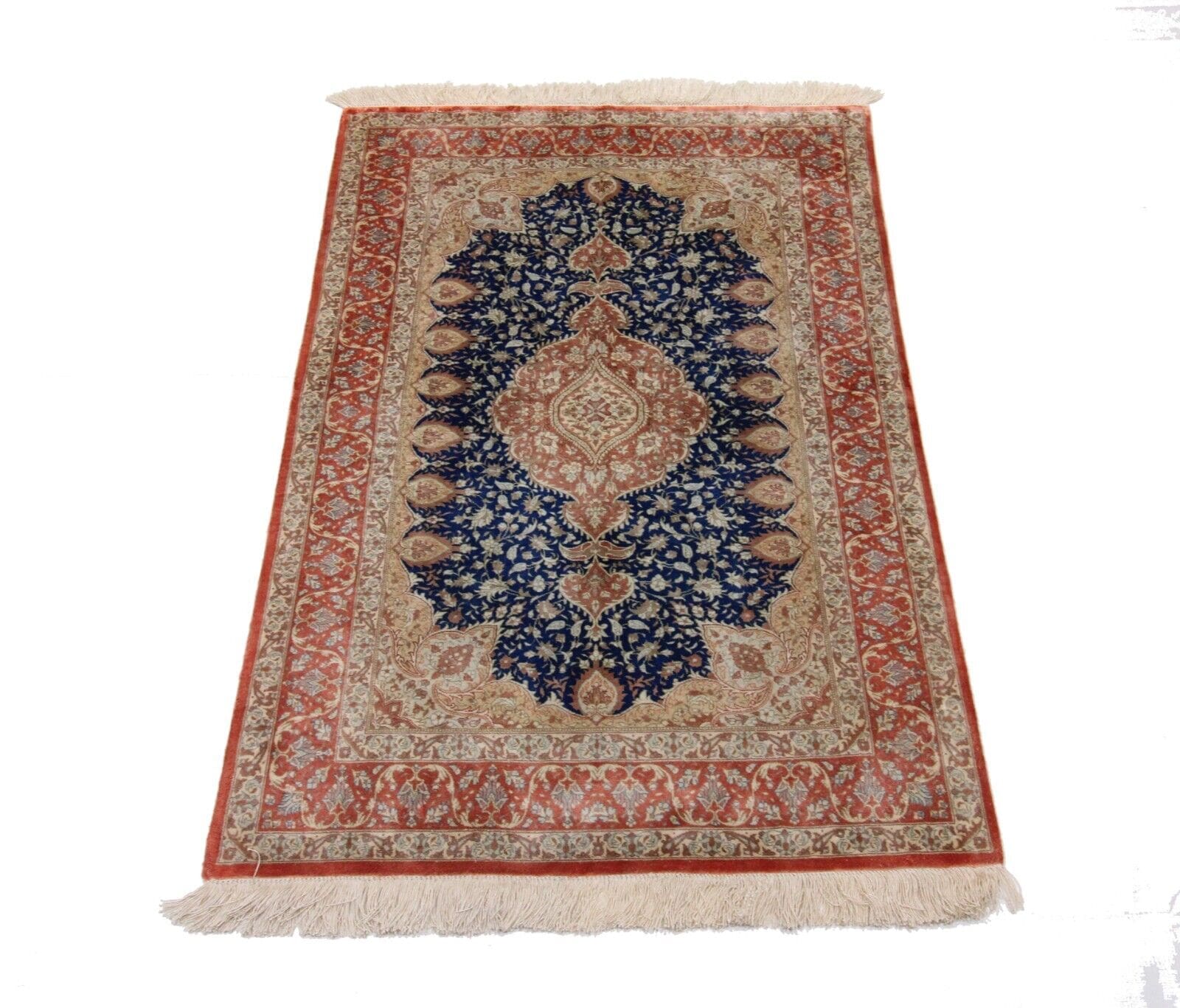 Original Handgeknüpfter Perserteppich Ghom, Qom – Reine Seide 115 cm x 78 cm – Hochwertige Handarbeit, 100% Handgeknüpft
