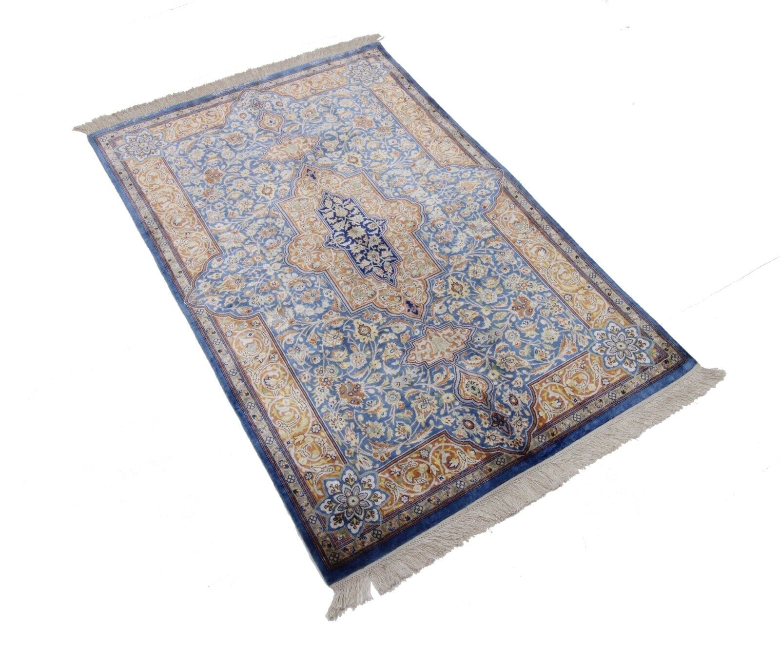 Original Handgeknüpfter Perserteppich Ghom, Qom – Reine Seide 120 cm x 78 cm, Elegantes Design, 100% Handarbeit, handgeknüpft, Perserteppich
