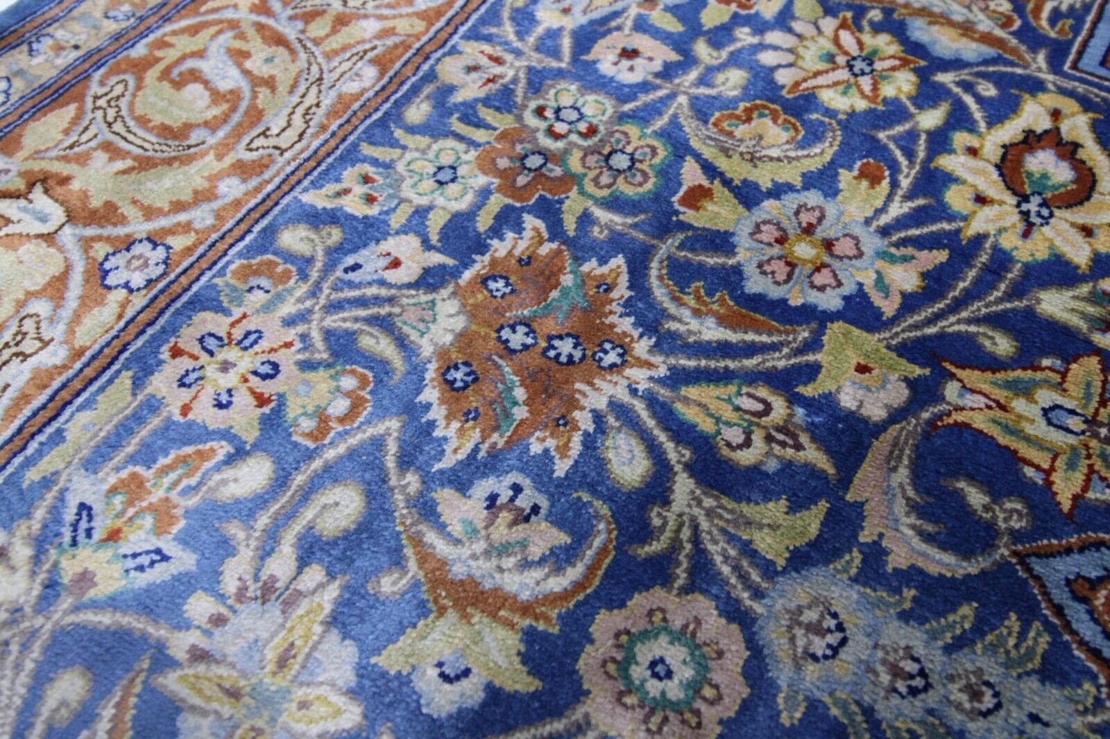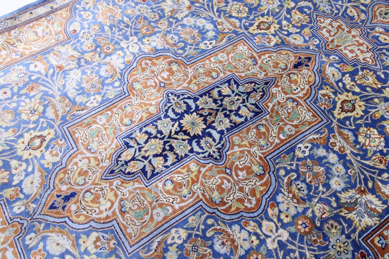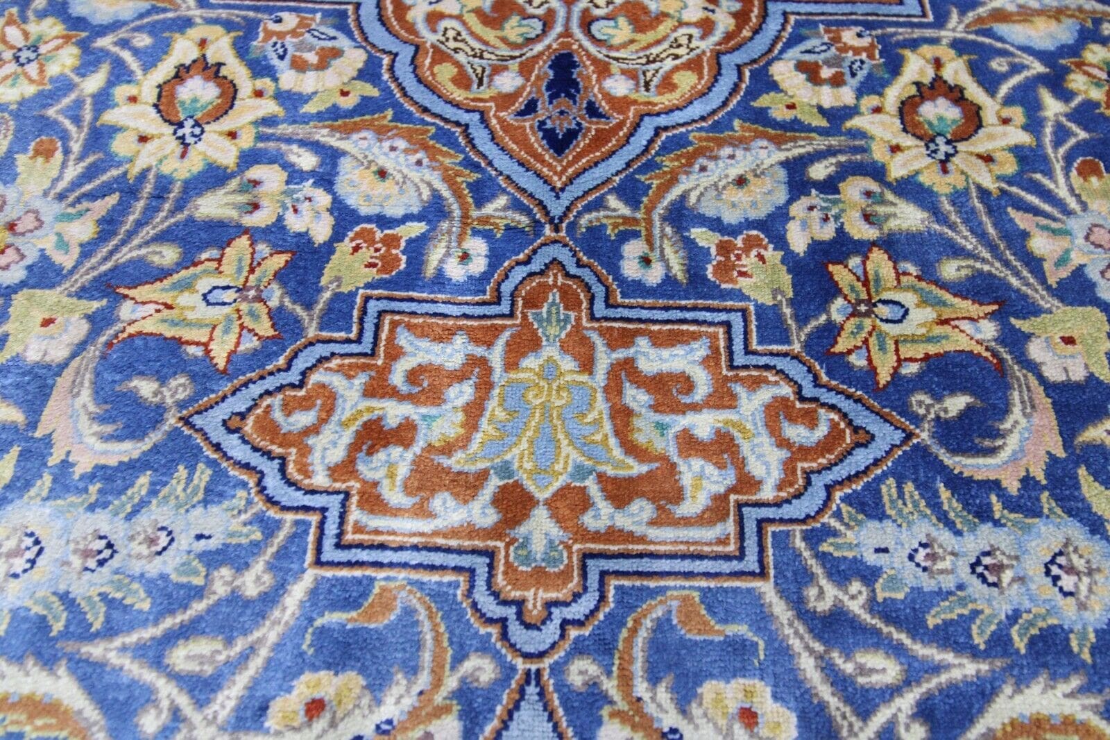Original Handgeknüpfter Perserteppich Ghom | Material: 100% Seide | Größe: 120 x 78 cm | Muster: Geblümt | Zustand: Neuwertig | Knotendichte: Hoch | Herkunft: Iran | Für Fußbodenheizung geeignet | Pflege: Professionelle Reinigung empfohlen | Stil: Orientalisch | Handgefertigt | Herstellungsmethode: Geknüpft