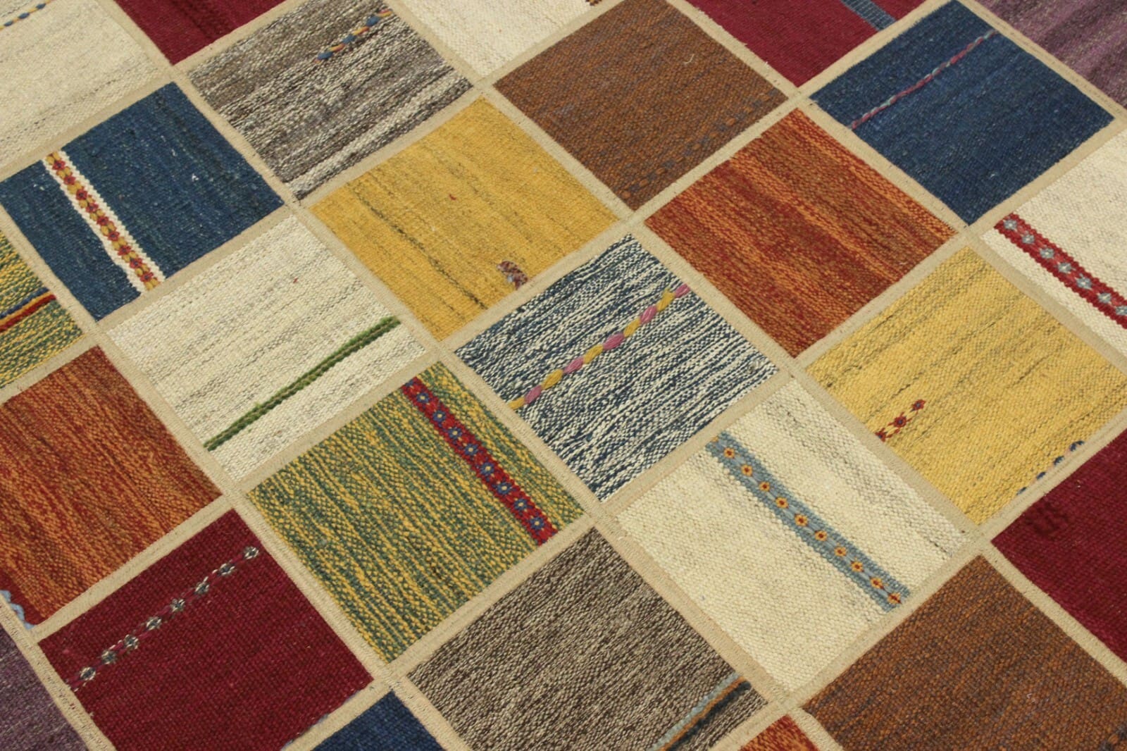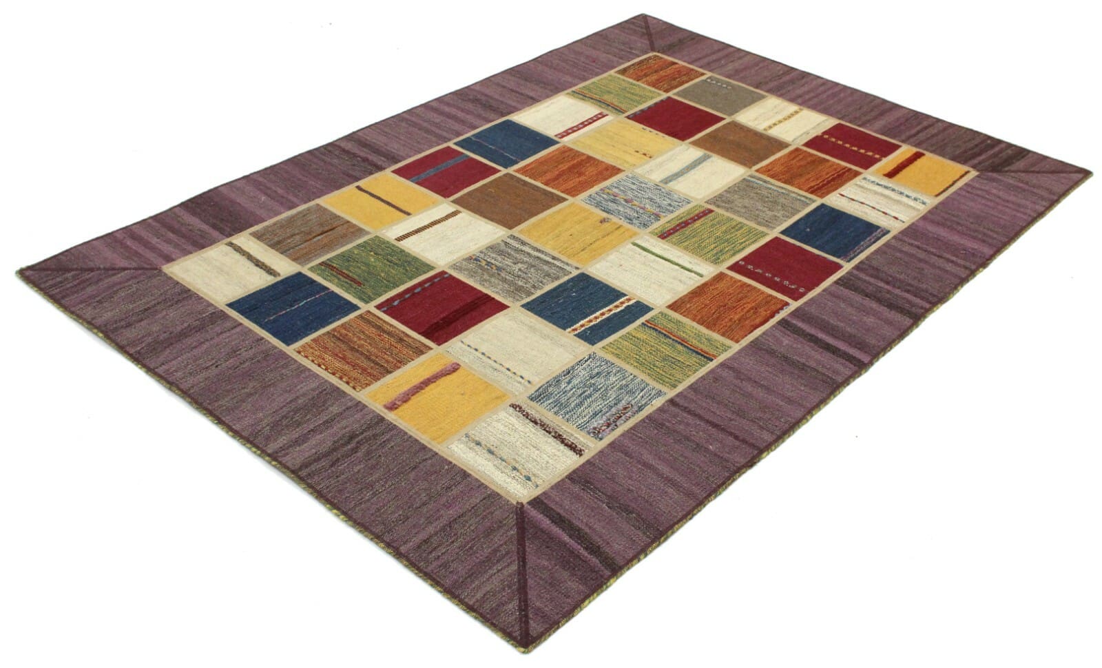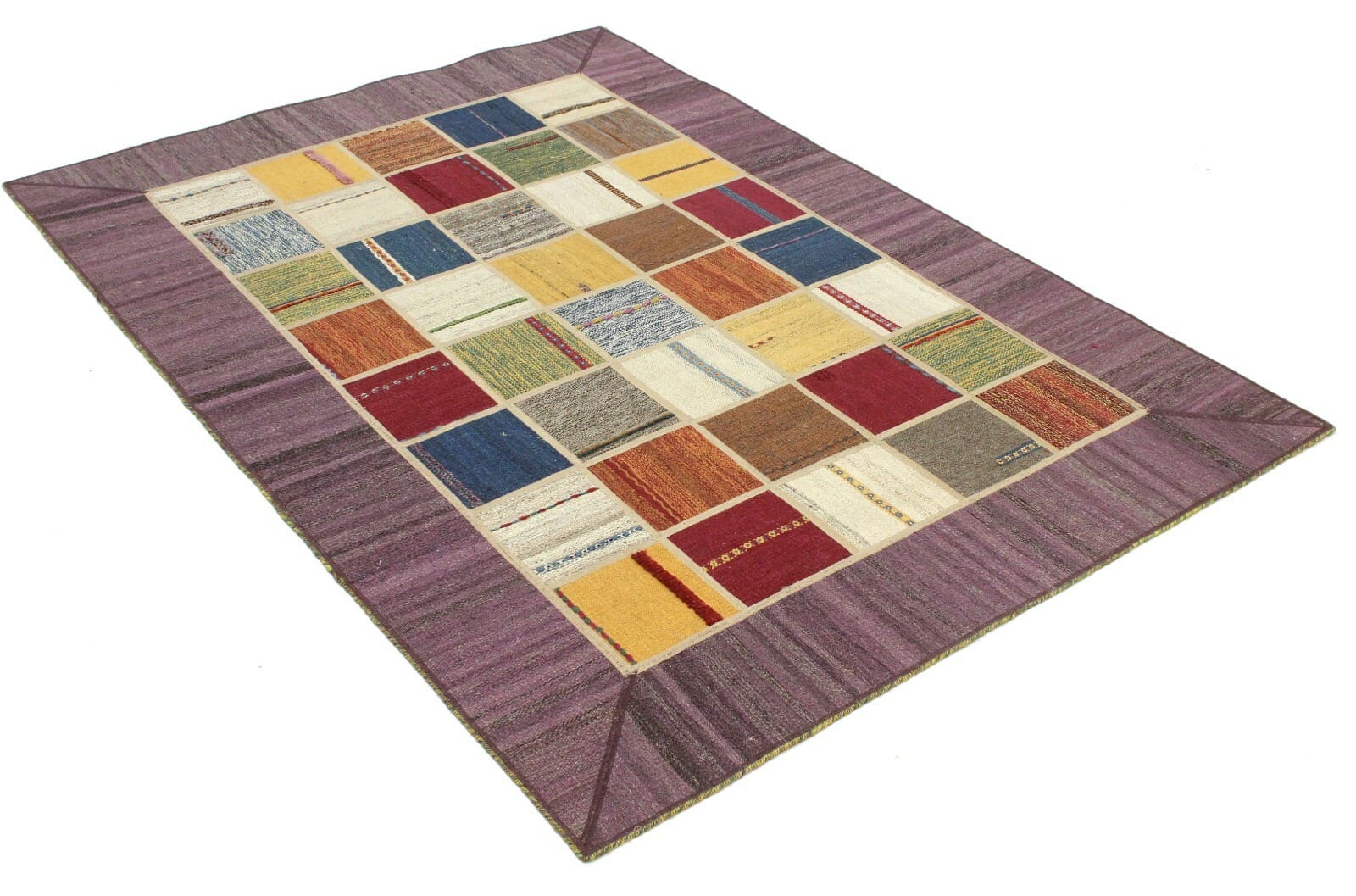 Original Handgewebter Kelim Patchwork 202×141 cm – Neu, handgewebt