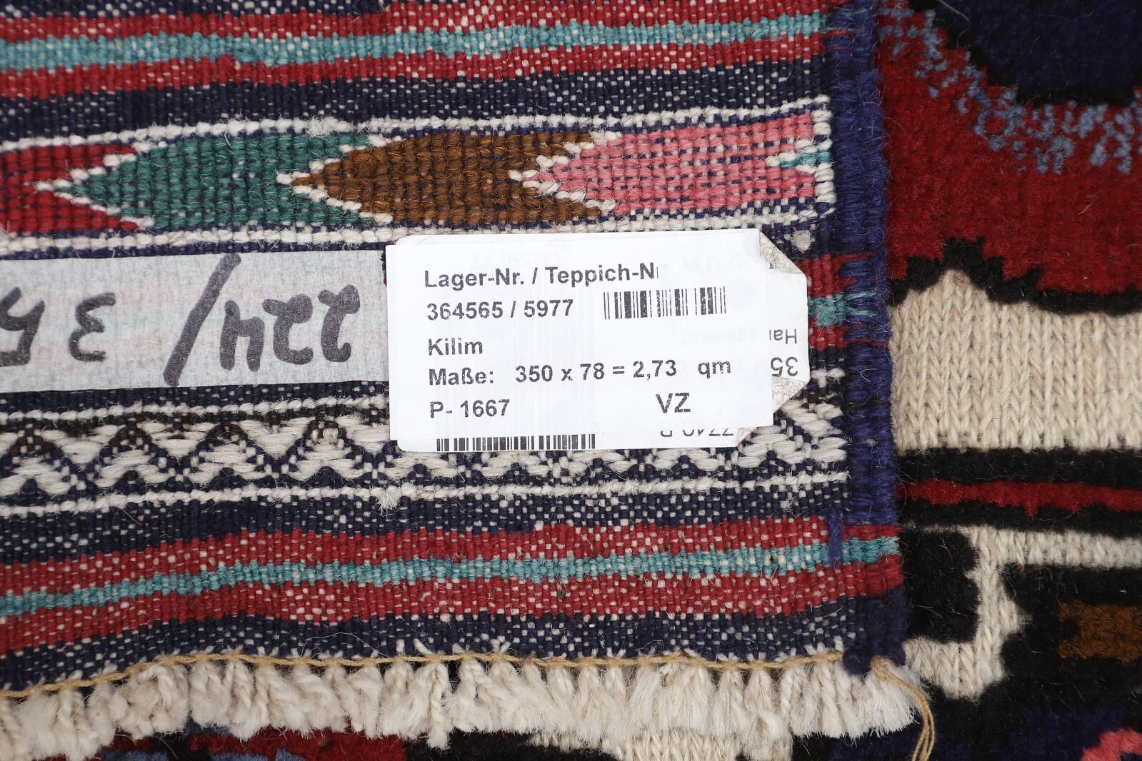 Original handgewebter Old Styl Kelim Teppich | Knotendichte: Handgeknüpft | Material: 100% Wolle | Größe: 352 x 79 cm | Zustand: Neu mit Etikett | Muster: Geblümt | Herkunft: Afghanistan | Stil: Art déco | Für Fußbodenheizung geeignet | Antirutsch-Design | Geeignet für alle Zimmer
