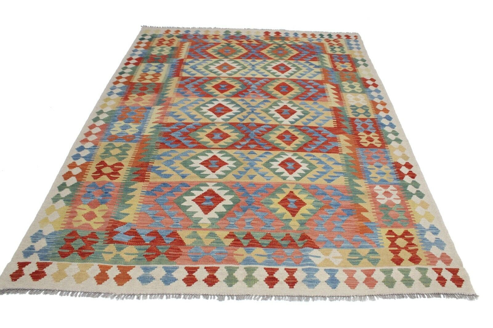 100% handgewebter Kelim | Größe: 249 x 182 cm | Material: 100% Wolle | Muster: Geometrisch | Zustand: Neu ohne Etikett | Beidseitig verwendbar | Für Fußbodenheizung geeignet | Herkunft: Afghanistan | Herstellungszeitraum: Ab 2020