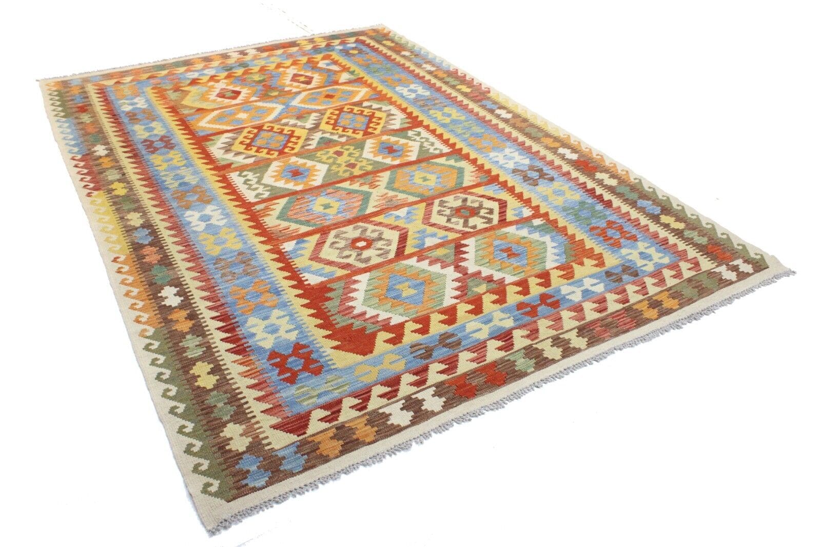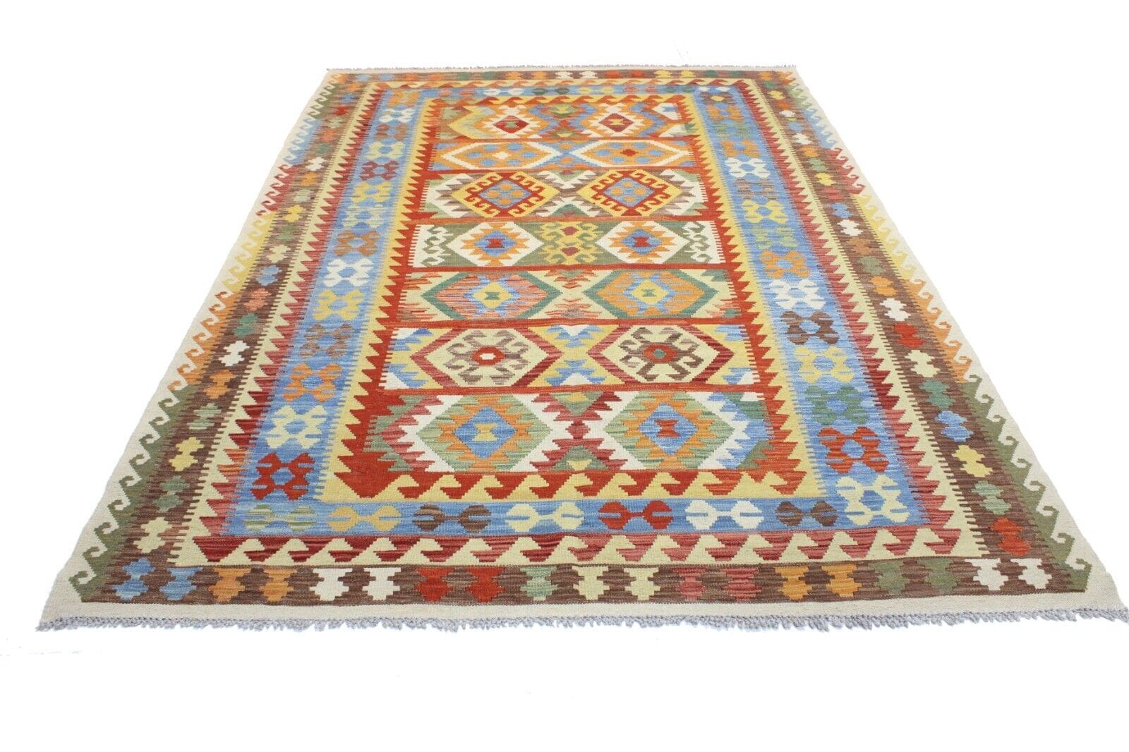 Original Handgewebter Kelim | Größe: 298 x 208 cm | Material: 100% Hochlandwolle | Knotendichte: Handgeknüpft, kurze Florhöhe | Muster: Geometrisch | Zustand: Neu ohne Etikett | Beidseitig verwendbar, für Fußbodenheizung geeignet | Regionales Design: Afghanistan | Herstellungsmethode: Gewebt (klassisch) | Geeignet für alle Zimmer