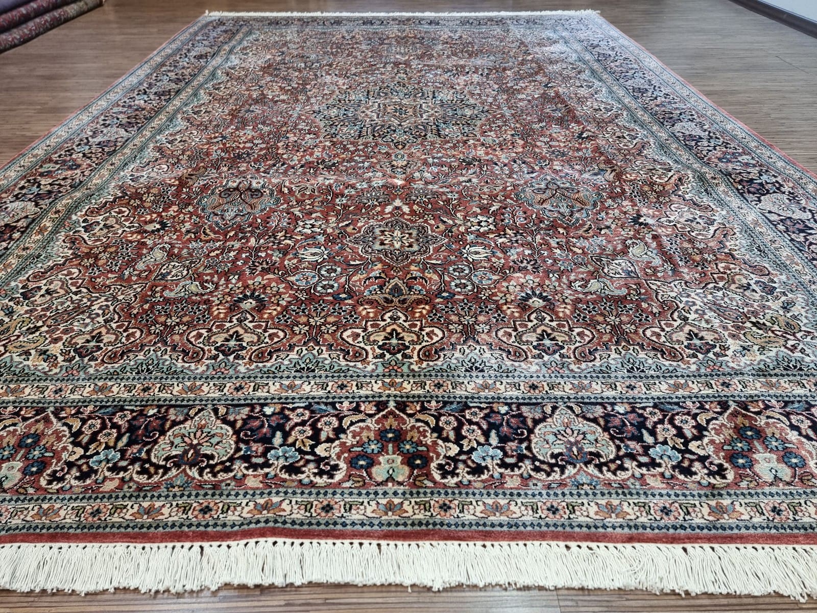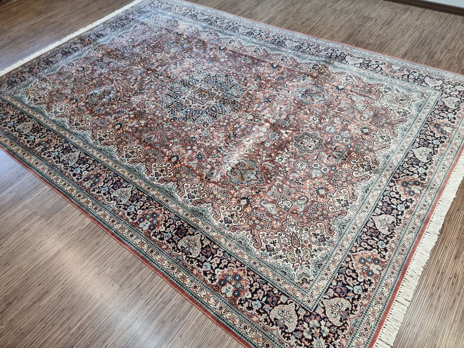Original Indischer Kachmir Ghom Seide Teppich