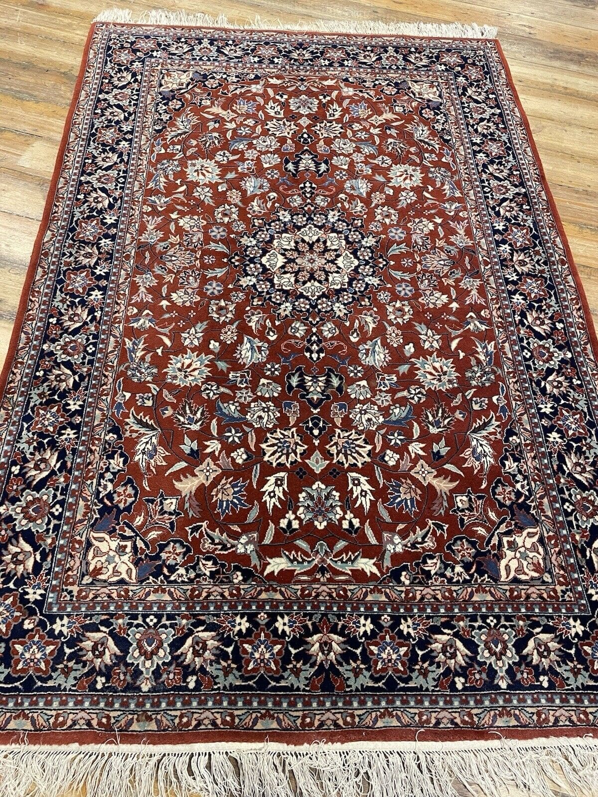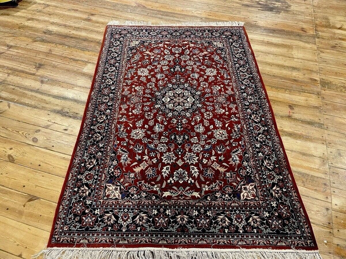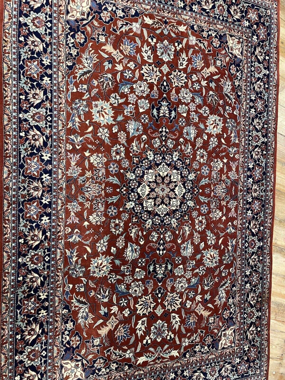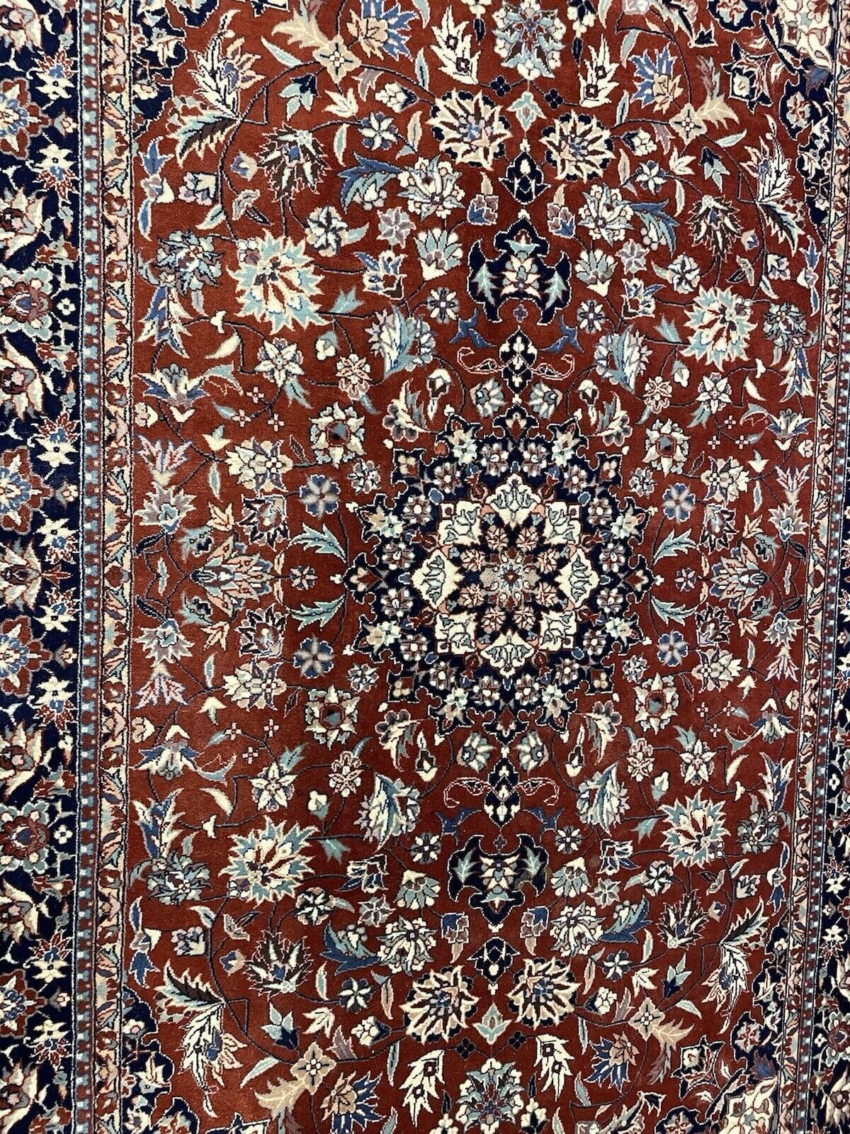 Als Perserteppich bringt dieser Teppich die reiche Kultur und Geschichte des Iran mit sich, insbesondere die Tradition der Teppichknüpfkunst, die schon Jahrhunderte zurückreicht. Die faszinierende Teppichkunst des Iran hat ihren Ursprung in Region und Städten wie Isfahan und Tabriz, die für ihre komplizierten Muster und hohe Qualität bekannt sind. Die Teppiche aus dieser Region erzählen oft Geschichten durch ihre Dessins, die Symbole von Natur, Glauben und der Alltag der Menschen darstellen.