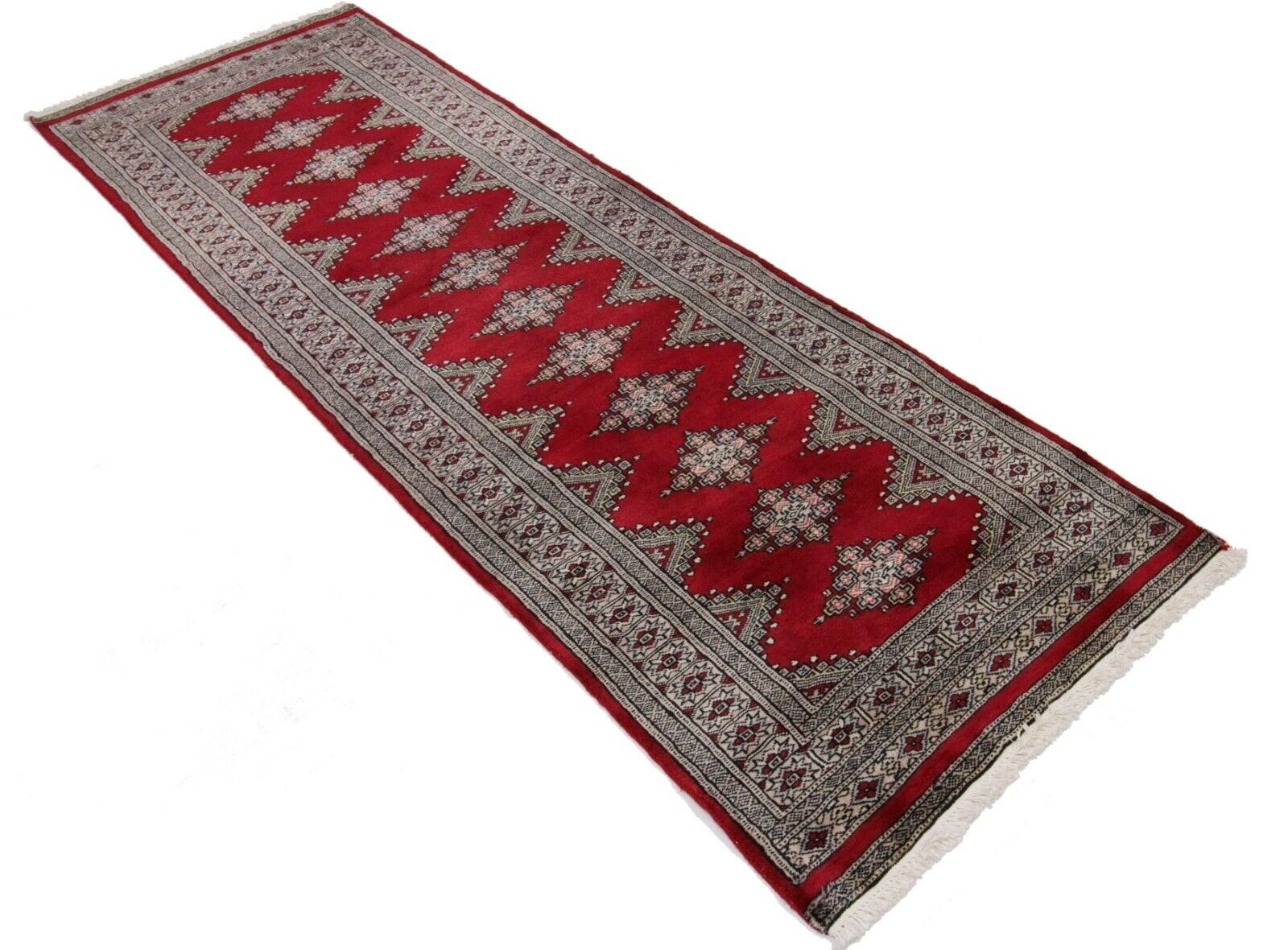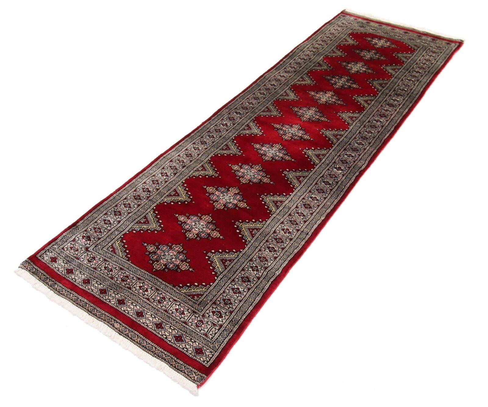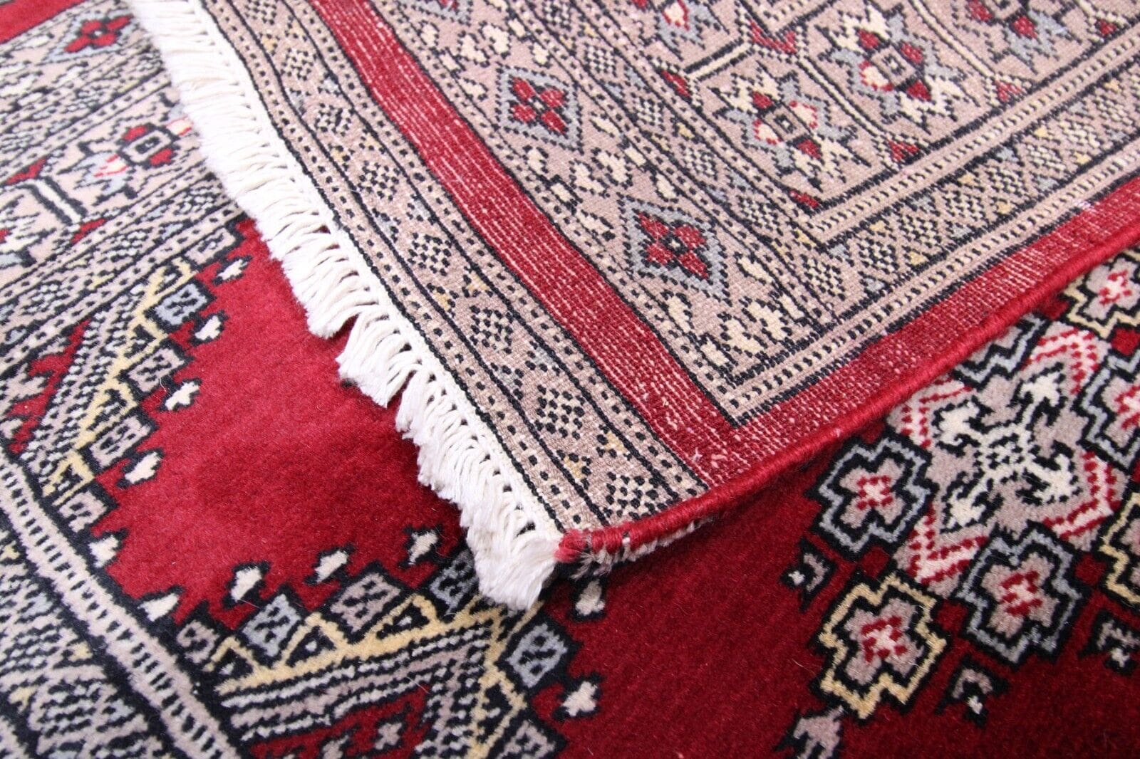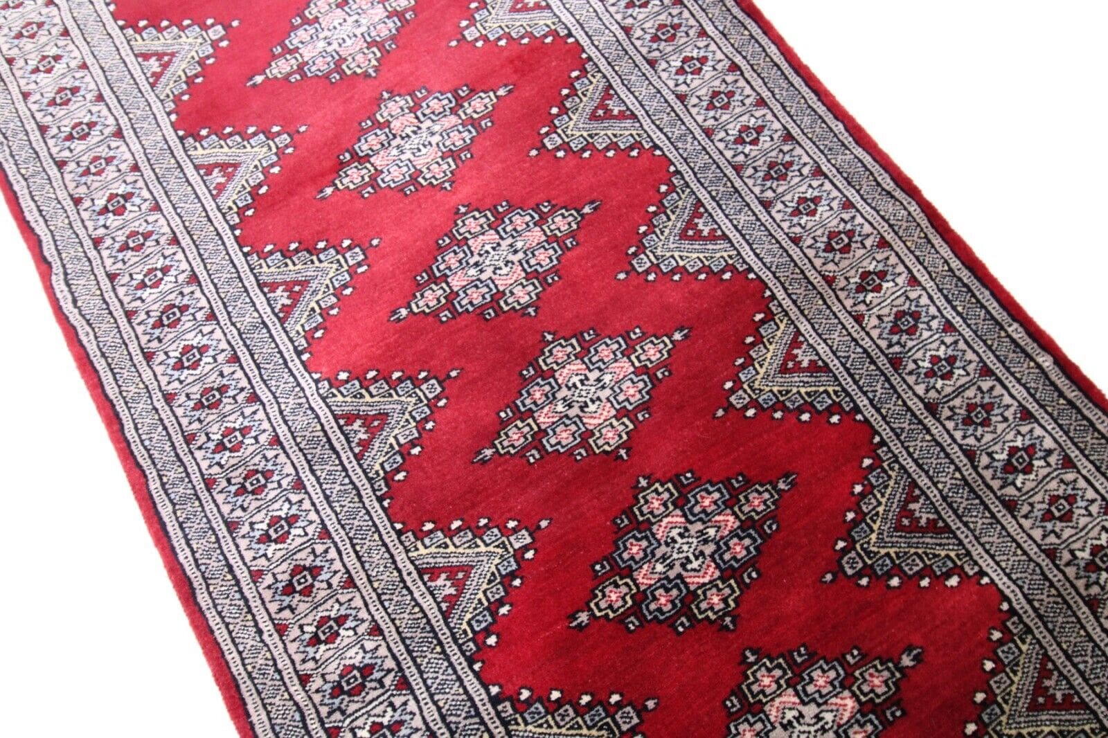 Original Pakistan Teppich Buchara | Größe: 242 x 80 cm | Material: 100% Wolle und 100% Baumwolle | Muster: Geometrisch | Zustand: Top Qualität, gebraucht | Herstellungszeitraum: 1980-1989 | Handgeknüpft und waschbar | Geeignet für Fußbodenheizung | Regionales Design: Buchara | Stil: Geometrisch | Farbe: Rot