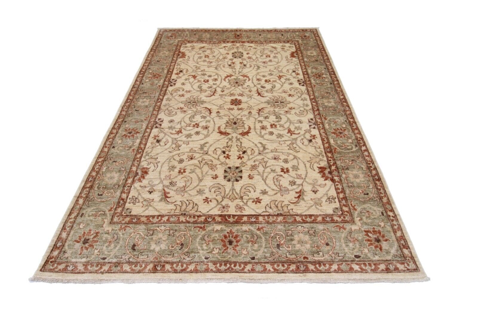 Original Pakistan Teppich Ziegler | Größe: 272 x 190 cm | Knotendichte: Hochwertige Verarbeitung | Material: 100% Wolle und 100% Baumwolle | Muster: Geometrisch | Zustand: Neu ohne Etikett | Stil: Art déco | Für Fußbodenheizung geeignet | Handgeknüpft und umweltfreundlich | Ideal für alle Zimmer geeignet