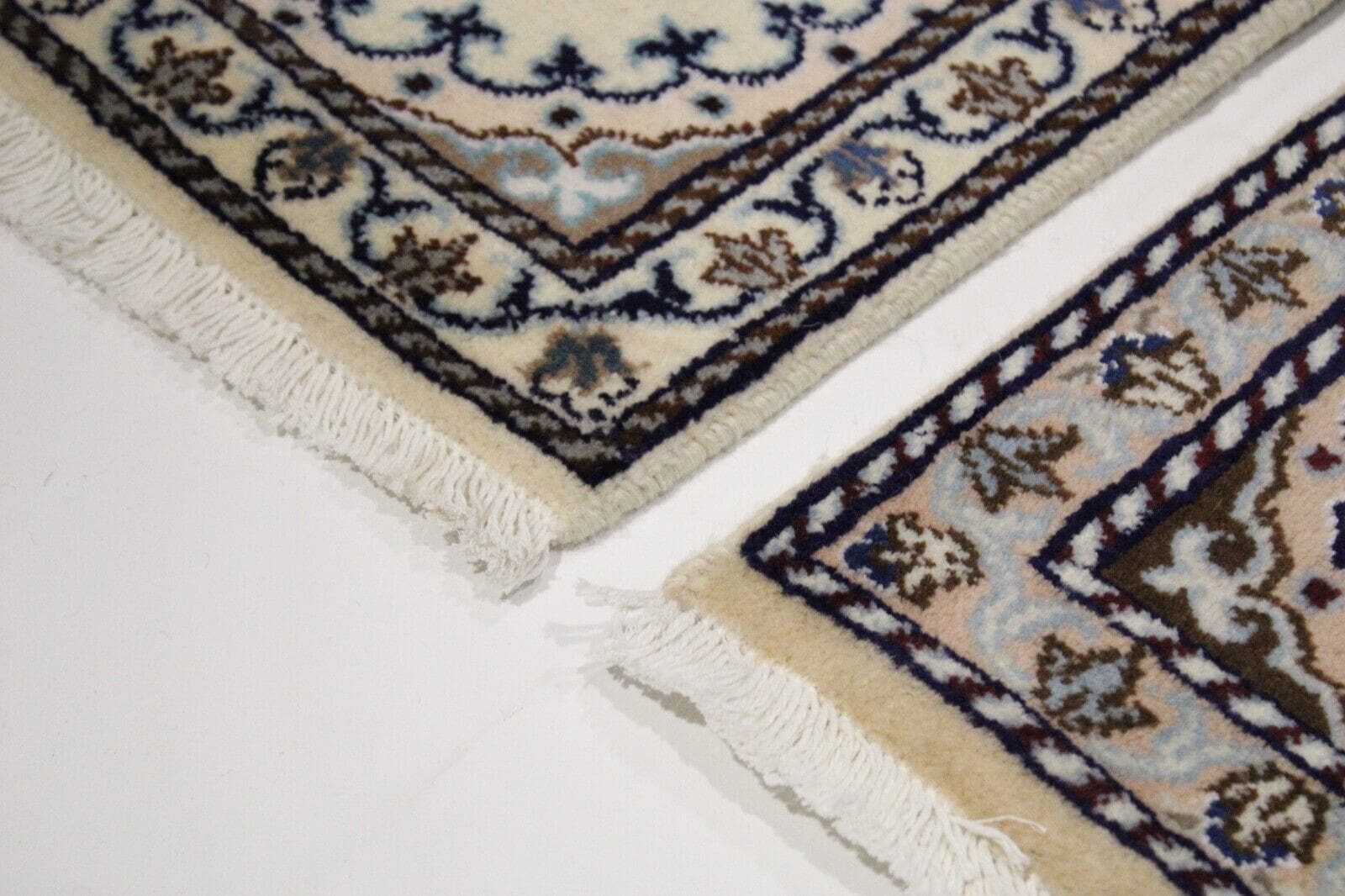 Teppiche erster Wahl haben keine Mängel und sind makellos in der Verarbeitung. Zweite Wahl Teppiche, wie dieser Nain, weisen kleinere Unregelmäßigkeiten auf, die jedoch oft nicht sichtbar sind. Diese Teppiche bieten eine ausgezeichnete Qualität zu einem günstigeren Preis.