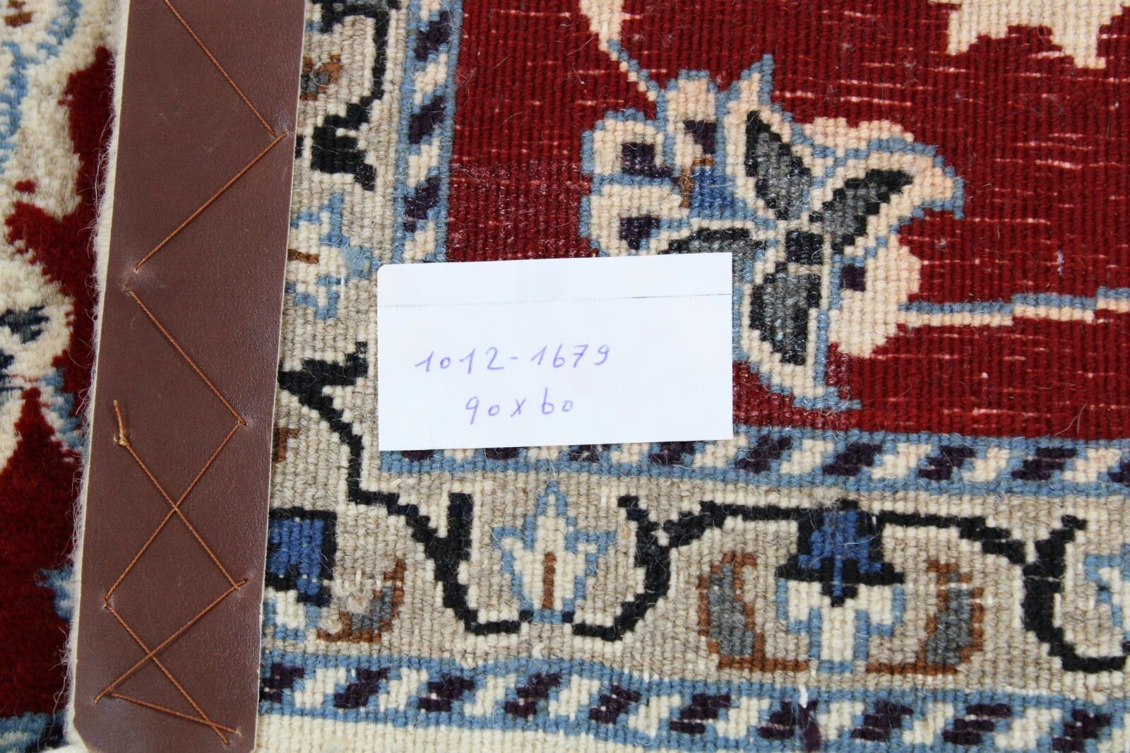 Original Perserteppich Nain | Größe: 90 cm x 60 cm | Material: Wolle und Baumwolle | Zustand: Neu ohne Etikett, Top Zustand | Muster: Orientalisch | Knotendichte: Handgeknüpft | Florhöhe: Hochflor | Geeignet für Fußbodenheizung | Stil: Traditionell Persisch | Form: Quadratisch | Für alle Zimmer geeignet