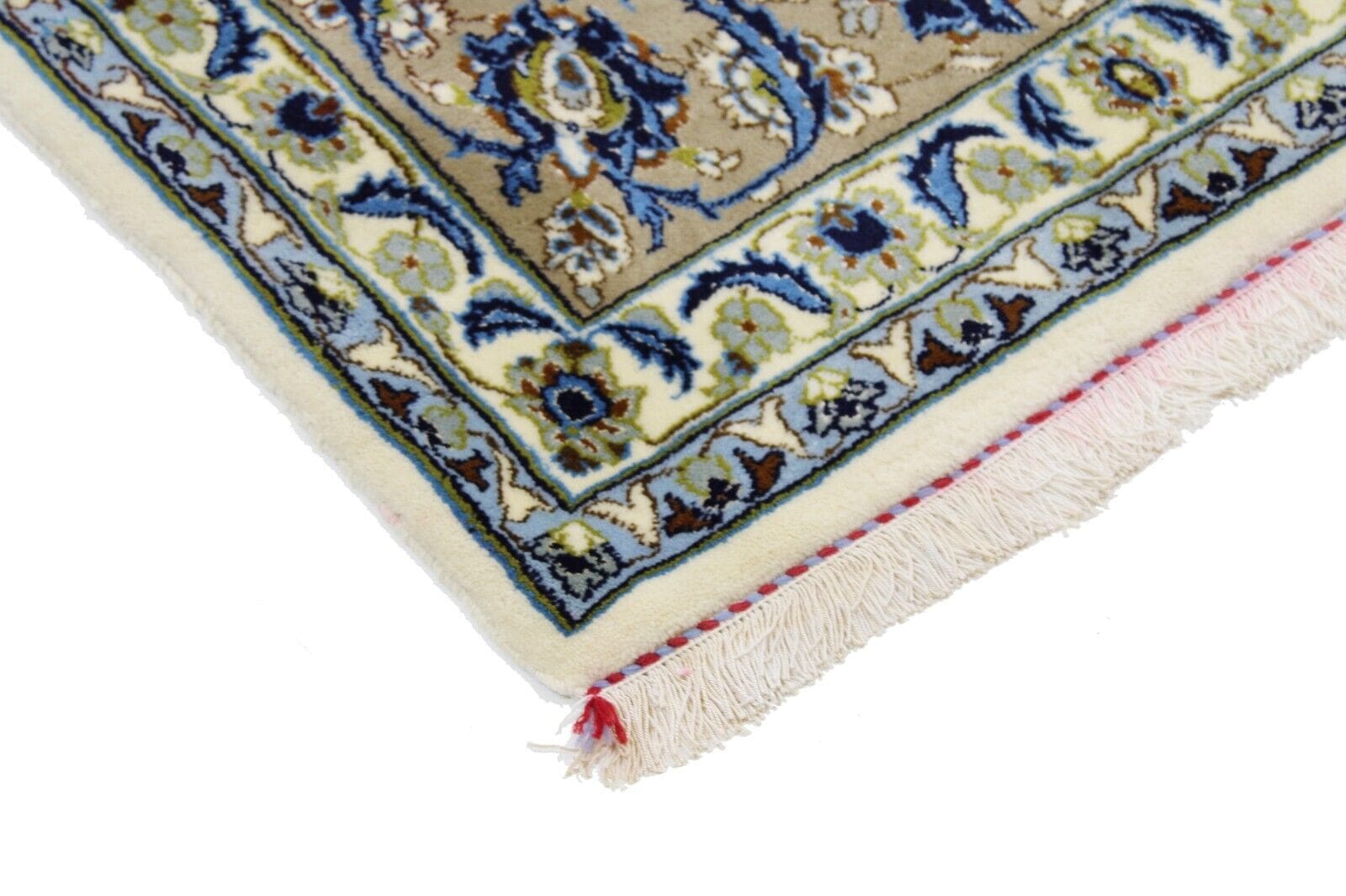 Ein besonderes Merkmal dieses Perserteppichs ist die hohe Knotendichte, die eine detailreiche Gestaltung der Muster ermöglicht. Dies ist charakteristisch für die Teppiche aus Isfahan. Die hervorragende Verarbeitung stellt sicher, dass der Teppich nicht nur ein dekoratives Element ist, sondern auch eine wertvolle Investition darstellt, die mit der Zeit an Wert gewinnt.