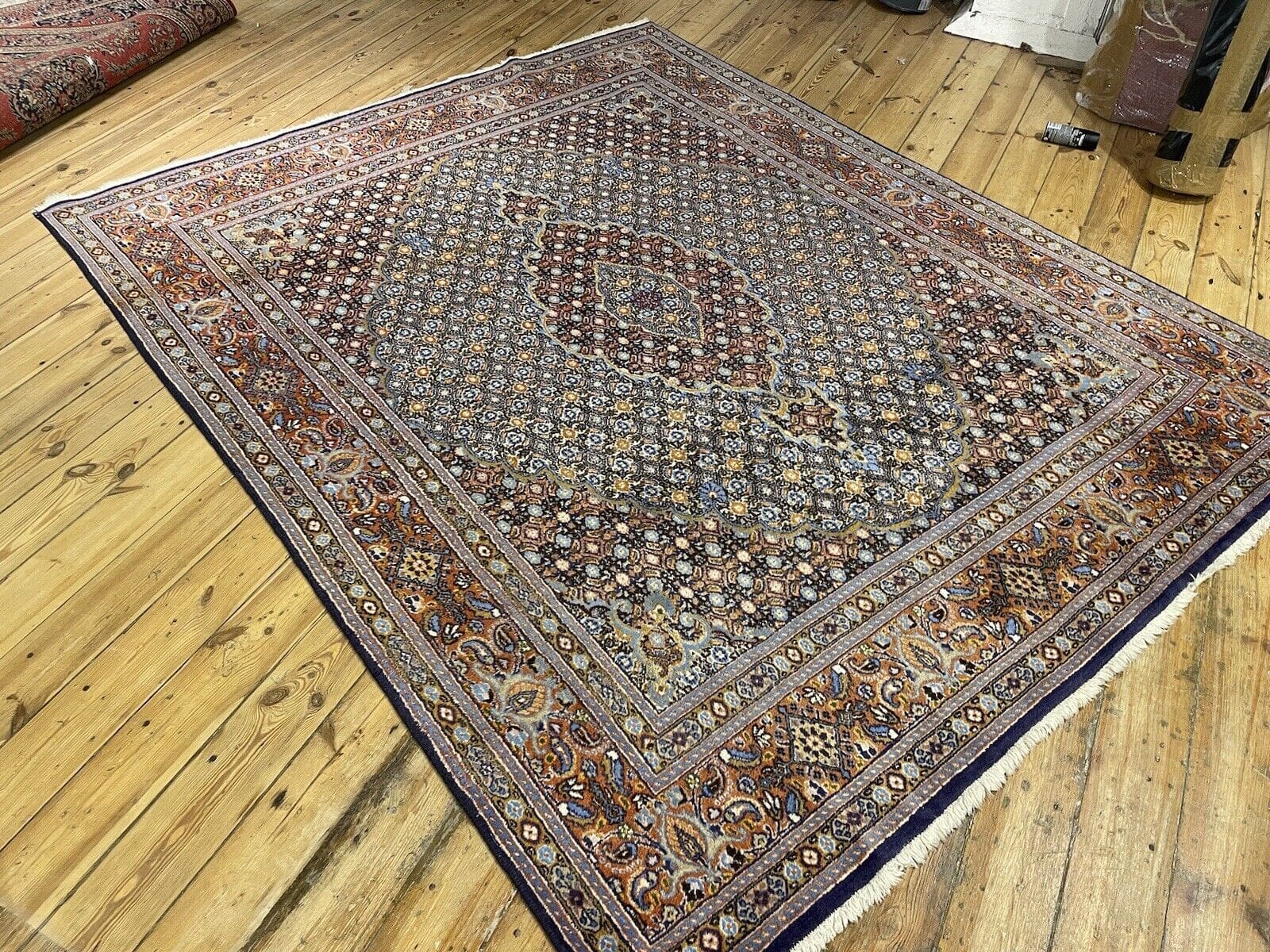 Die Herkunft des Moud Teppichs ist das gleichnamige Moud, ein kleines Dorf in der iranischen Provinz Khorasan. Diese Region ist bekannt für ihre lange Tradition in der Teppichherstellung, die bis ins 16. Jahrhundert zurückreicht. Khorasan ist berühmt für exquisite Teppiche, die häufig mit komplexen Mustern und lebendigen Farben gestaltet sind. Die Kunst der Teppichknüpfung in Moud basiert auf jahrhundertealten Techniken, die von Generation zu Generation weitergegeben werden. Die Teppiche aus dieser Region sind nicht nur für ihre ästhetische Schönheit bekannt, sondern auch für ihre kulturelle Bedeutung, die in den intricaten Designs und Symbolen, die oft Natur- und Symbolmotive widerspiegeln, zum Ausdruck kommt.