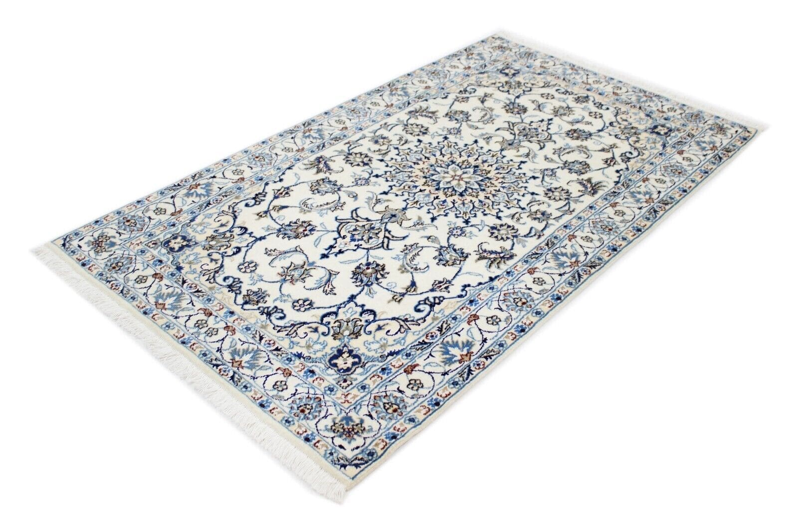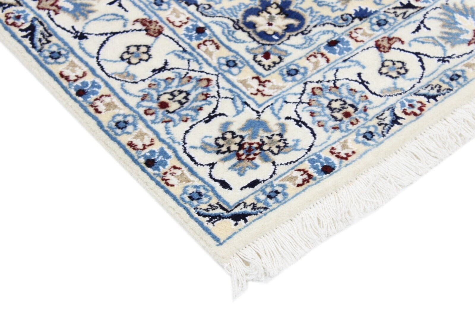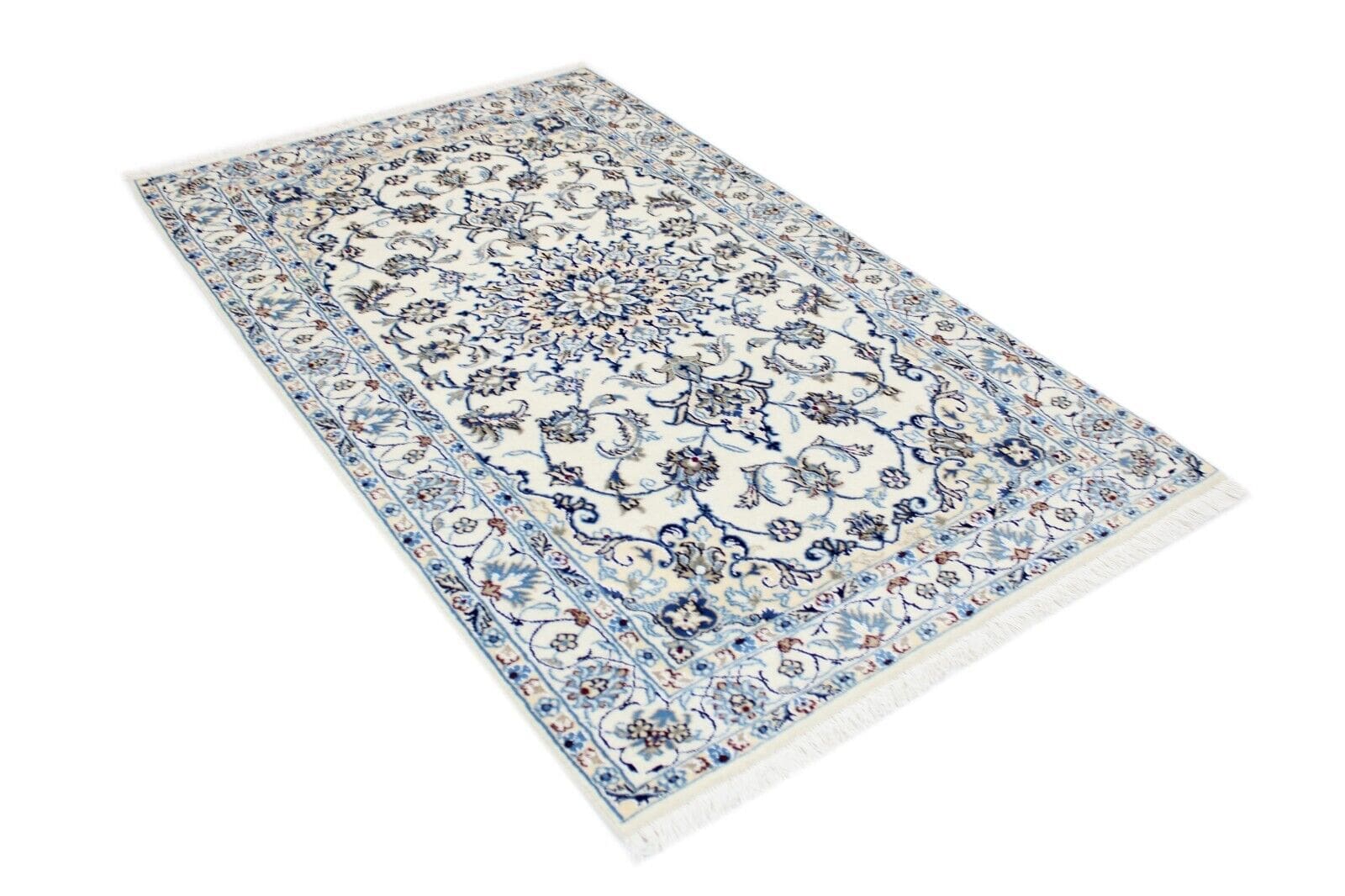 Original Perserteppich Nain | Größe: 194 x 121 cm | Material: Baumwolle und Wolle | Knotendichte: Hoch | Zustand: Neu mit Etikett | Muster: Orientalisch mit Blumen | Stil: Traditionell Persisch | Herkunft: Iran | Für Fußbodenheizung geeignet | Florhöhe: Hochflor | Rechteckige Form