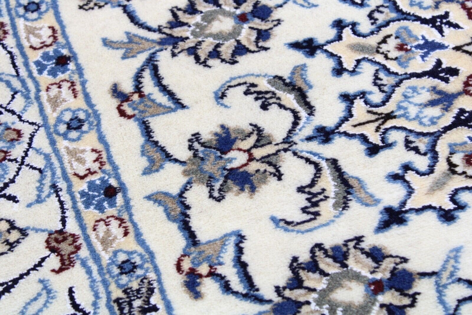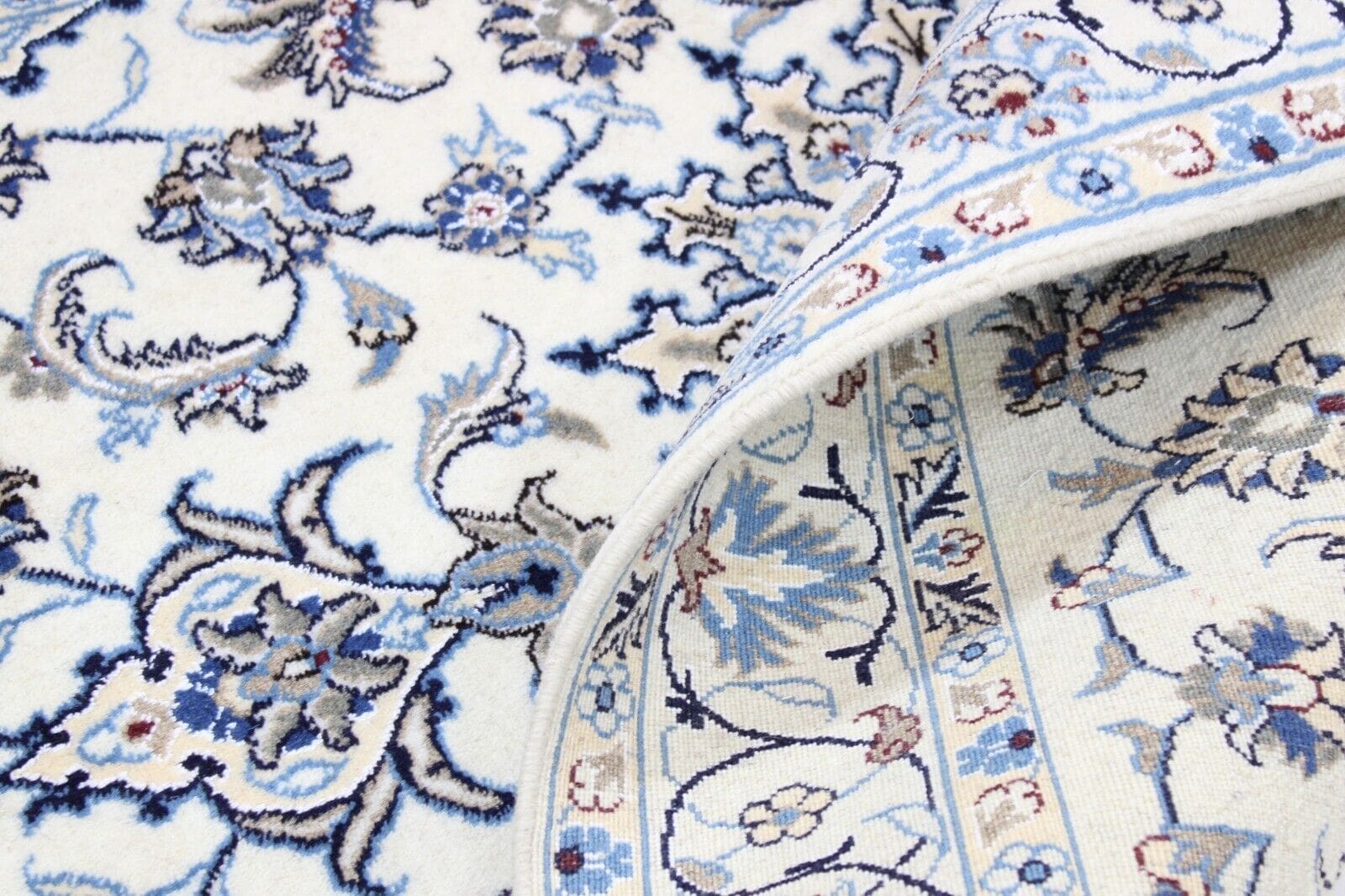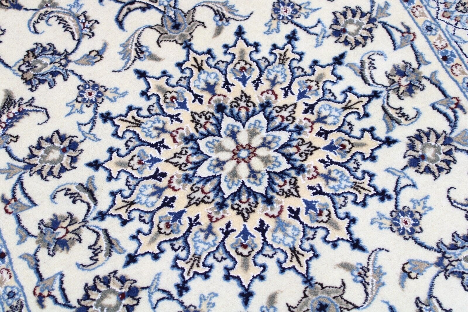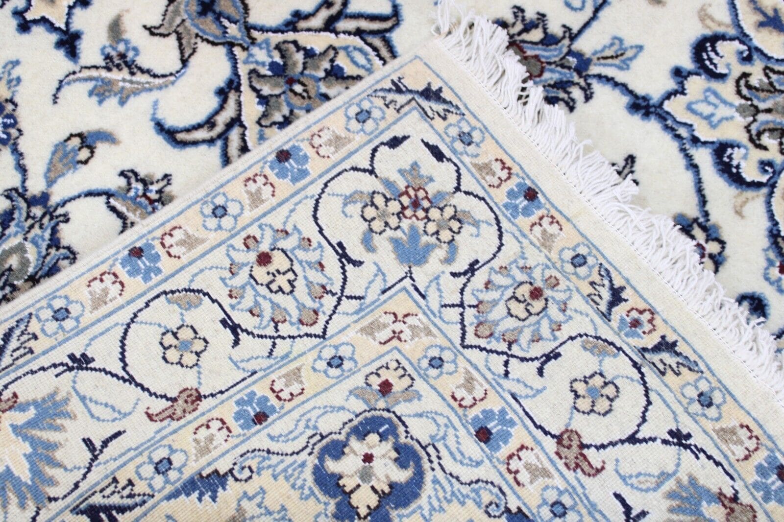 Original Perserteppich Nain | Größe: 194 x 121 cm | Material: Baumwolle und Wolle | Knotendichte: Hoch | Zustand: Neu mit Etikett | Muster: Orientalisch mit Blumen | Stil: Traditionell Persisch | Herkunft: Iran | Für Fußbodenheizung geeignet | Florhöhe: Hochflor | Rechteckige Form