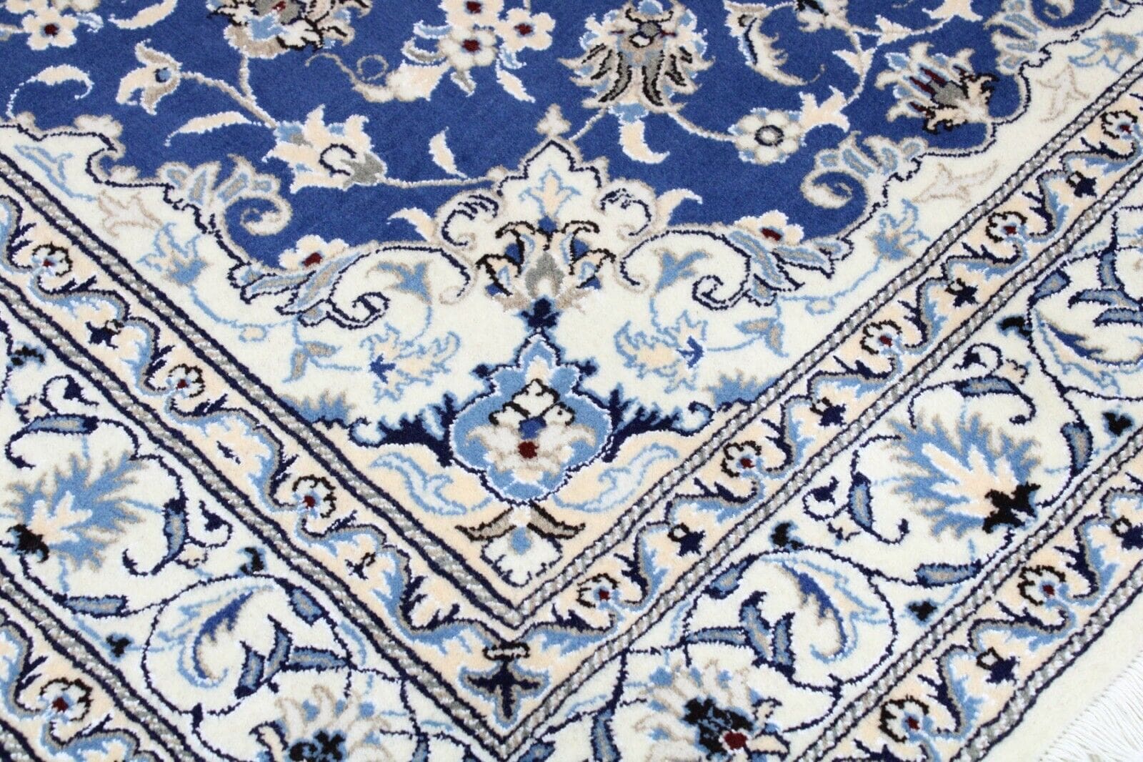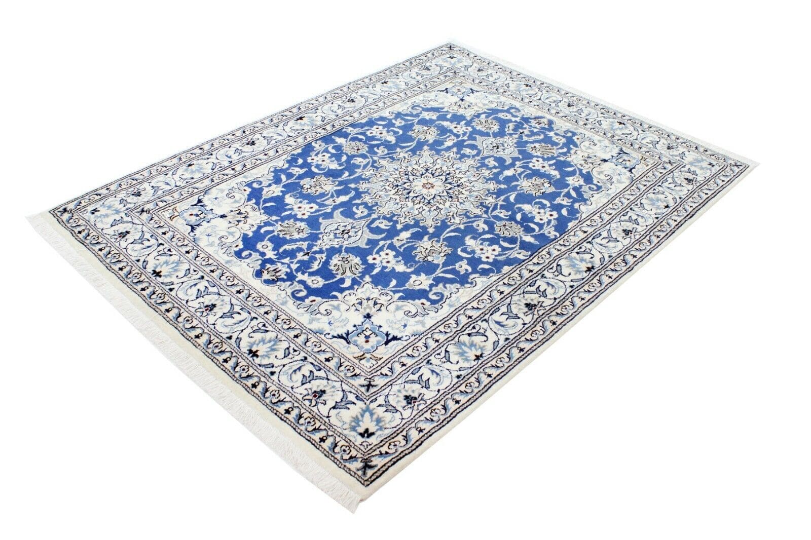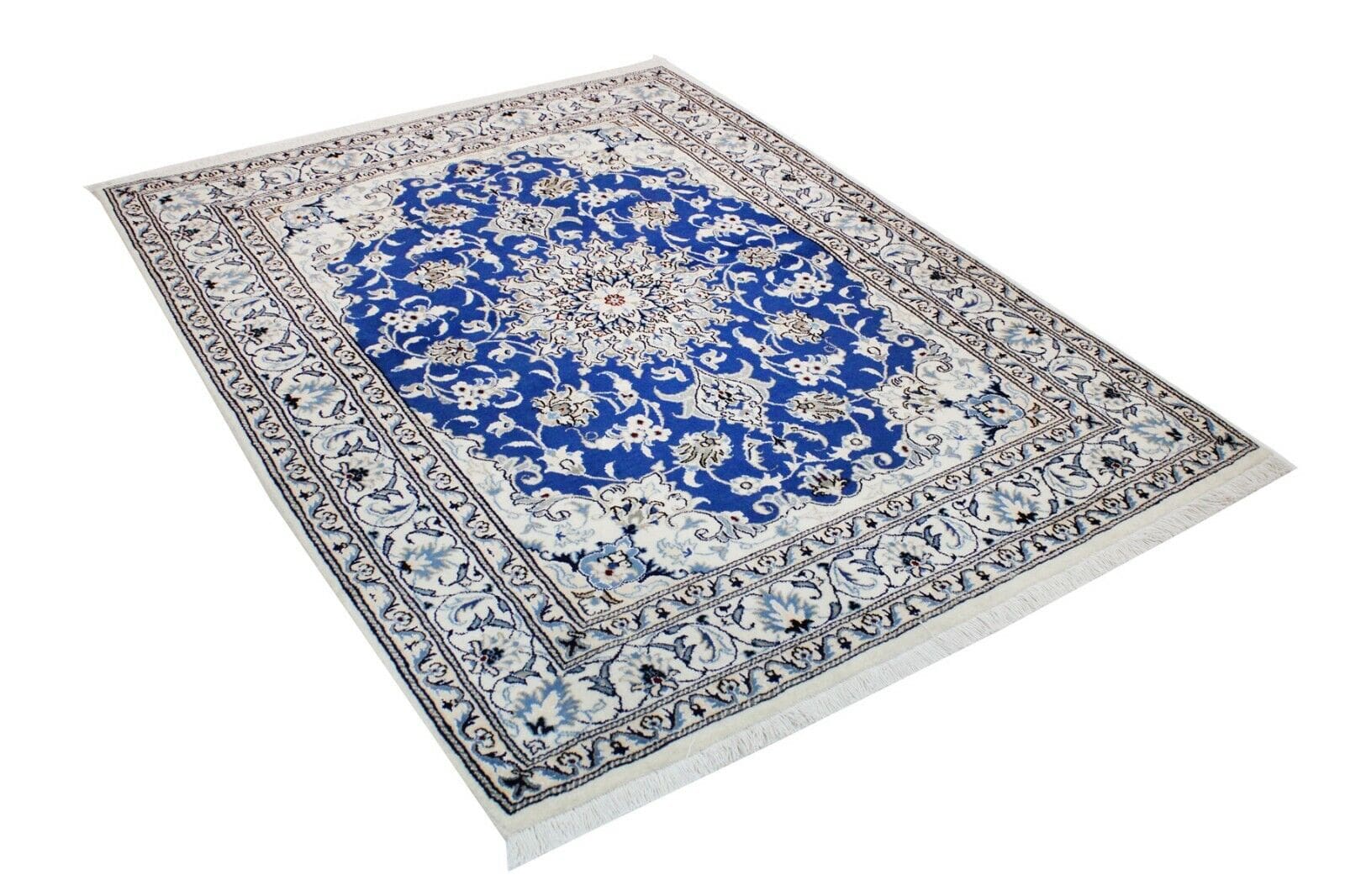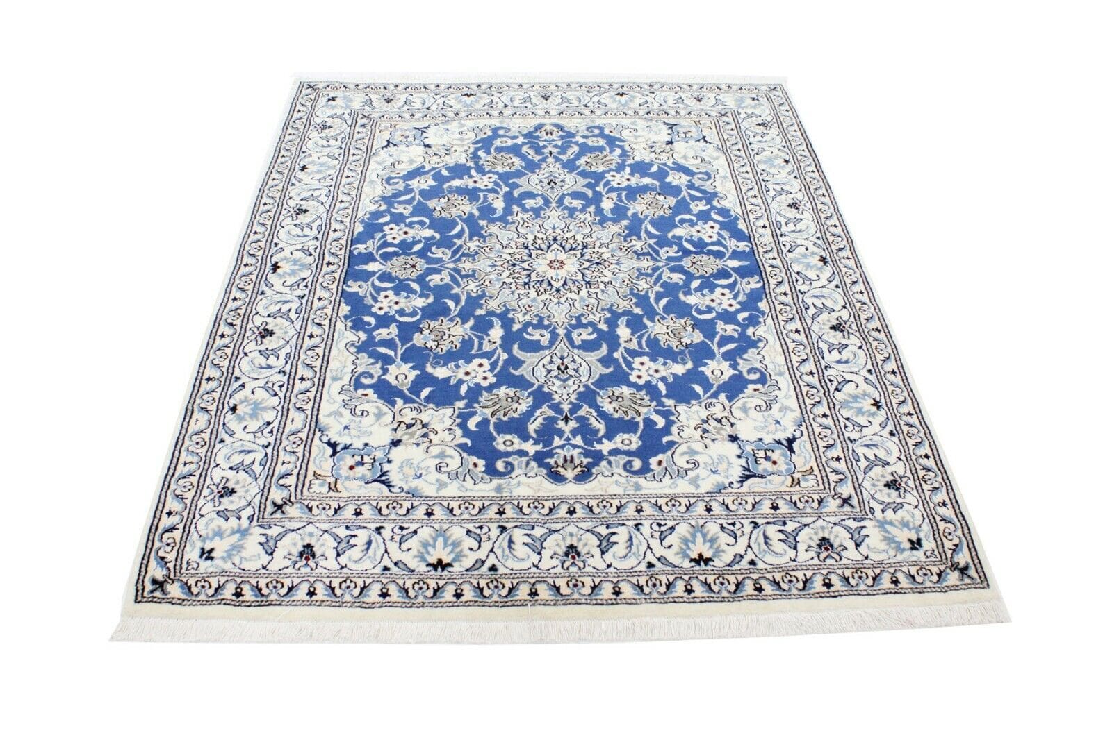 Original Perserteppich Nain | Größe: 195 cm x 148 cm | Material: Hochwertige Wolle und Baumwolle | Muster: Orientalisch mit Blumenmotiven | Zustand: Neu ohne Etikett, Top Zustand | Knotendichte: Handgeknüpft, hohe Qualität | Geeignet für Fußbodenheizung | Stil: Traditionell Persisch | Herkunft: Iran | Florhöhe: Hochflor | Farbe: Blau