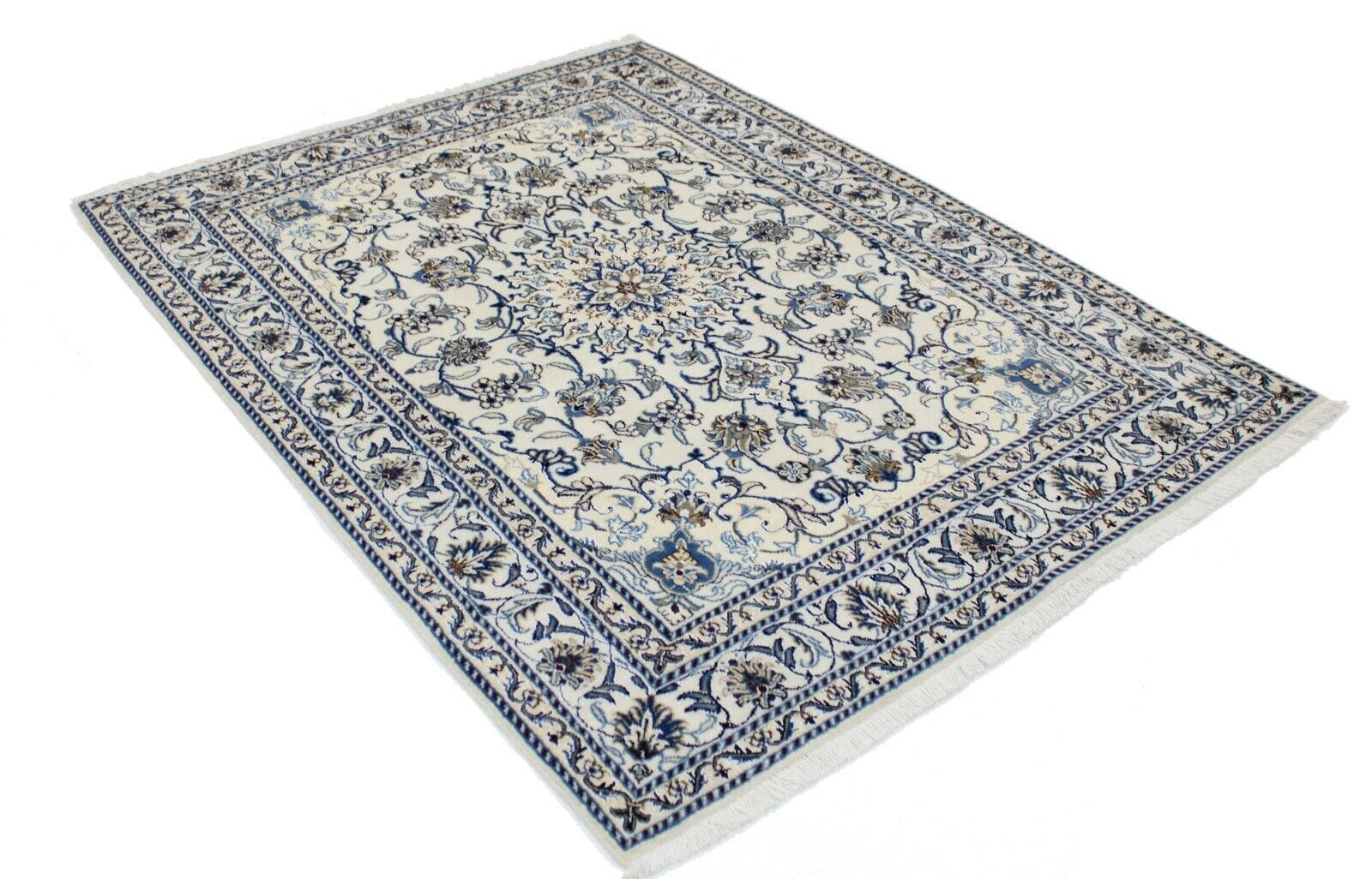 Original Perserteppich Nain | Größe: 198 cm x 150 cm | Muster: Orientalisch mit Blumen | Material: 100% Wolle und Baumwolle | Zustand: Neu, Top Zustand | Handgeknüpft | Florhöhe: Hochflor | Für Fußbodenheizung geeignet | Herkunft: Iran | Stil: Traditionell persisch | Webart: Handgeknüpft