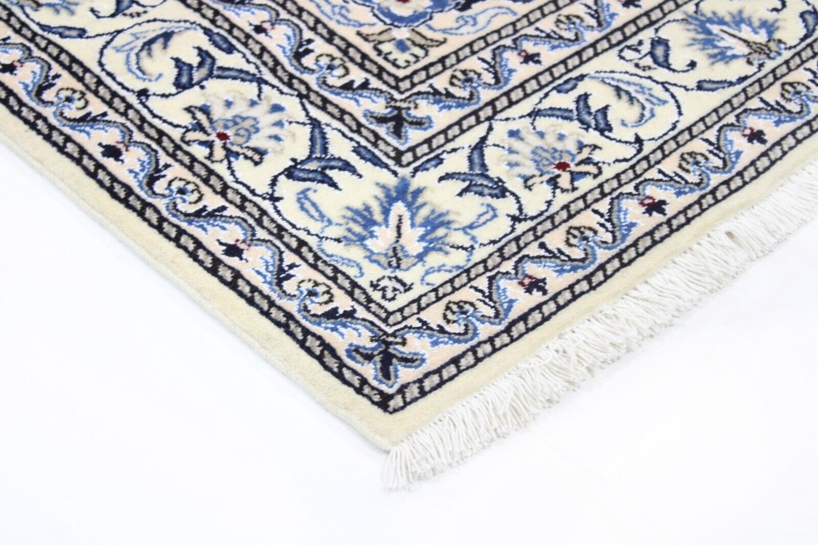 Der Teppich stammt aus der Region Nain im Iran, die für ihre außergewöhnlichen Teppichkunstwerke bekannt ist. Nain ist berühmt für die feinen und detailreichen Designs, die oft florale Motive und geometrische Formen beinhalten. Diese Teppiche werden traditionell in kleinen Workshops hergestellt, wo erfahrene Teppichknüpfer ihr Handwerk über Generationen weitergeben. Der Ursprung dieser Kunstform reicht viele Jahrhunderte zurück, und jeder Teppich erzählt so die Geschichte und Kultur der Region. Die Teppichknüpferei in Nain ist besonders geschätzt, nicht nur für die hochwertigen Materialien, sondern auch für die methodischen und präzisen Knüpftechniken, die bei der Herstellung angewandt werden.