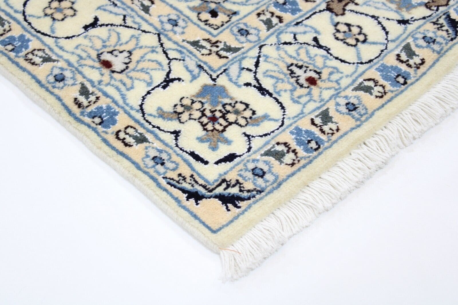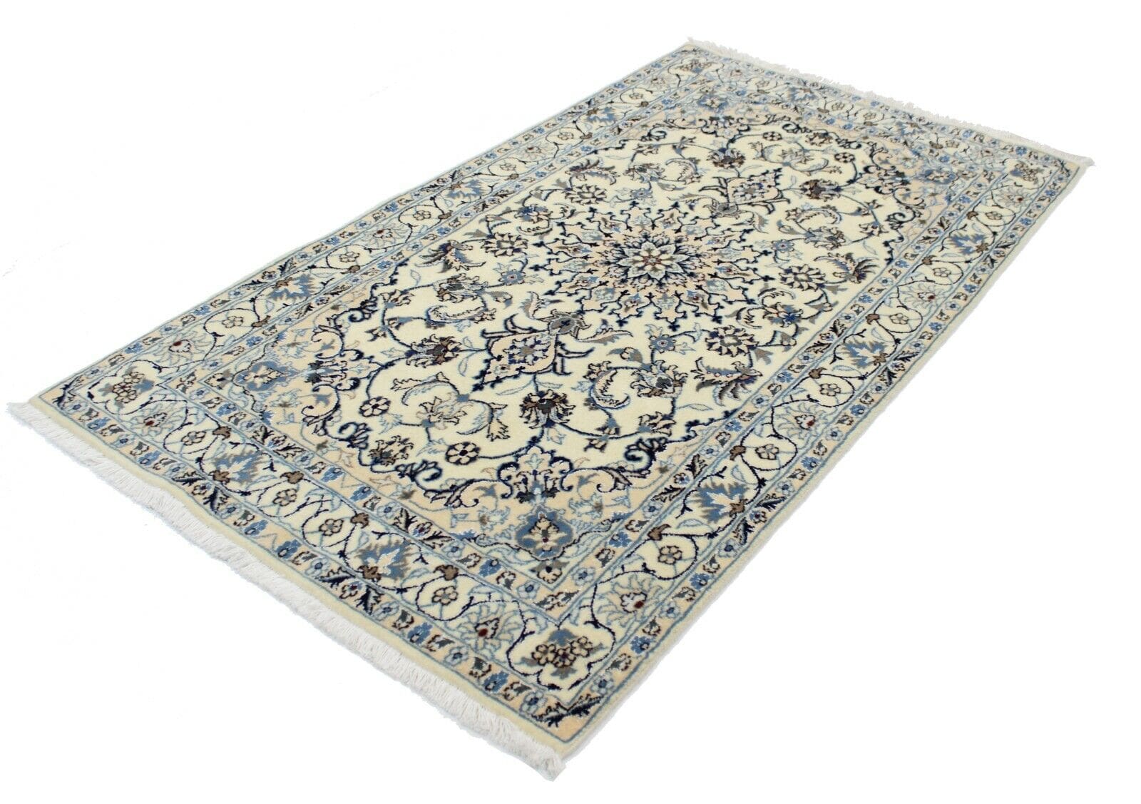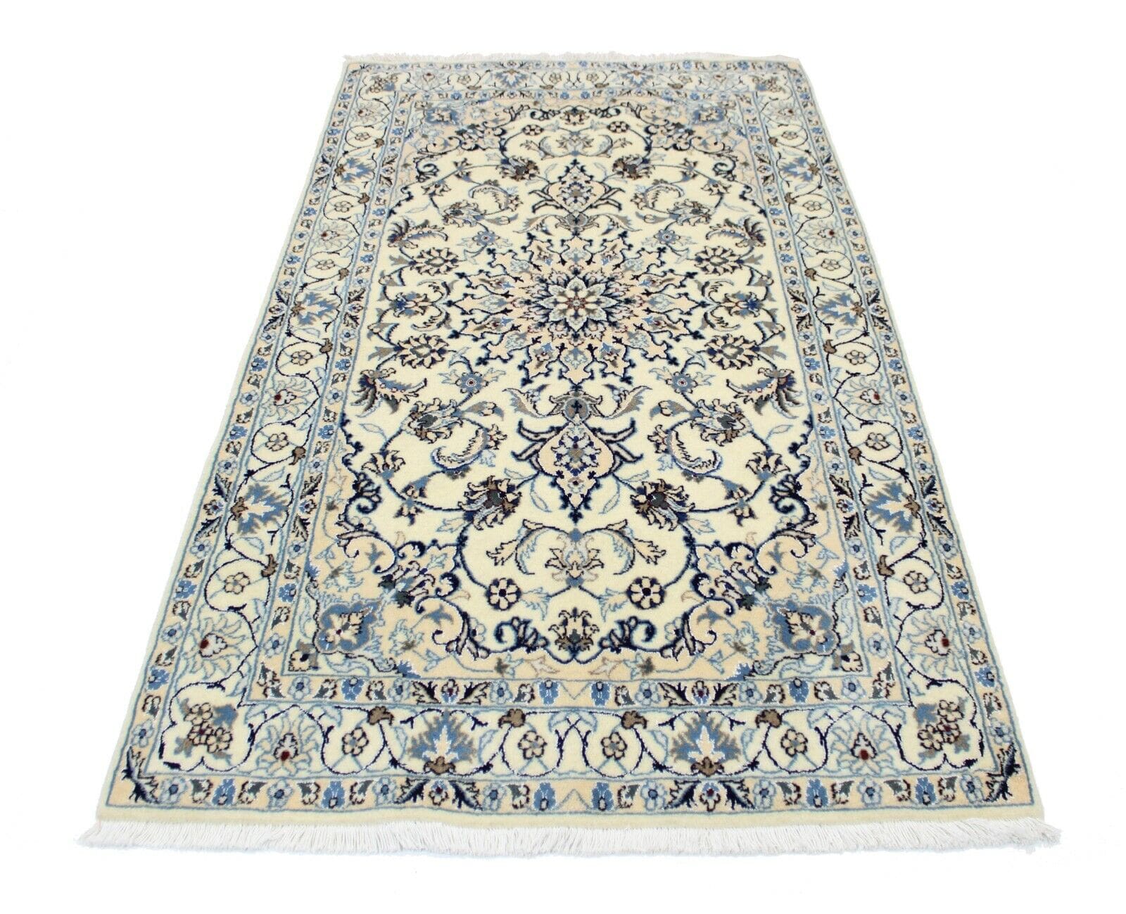 Original Perserteppich Nain | Größe: 215 cm x 119 cm | Material: 100% Wolle und Baumwolle | Muster: Orientalisch mit Blumenmotiv | Zustand: Top, neu ohne Etikett | Knotendichte: Hochflor | Stil: Traditionell Persisch/Orientalisch | Herkunft: Handgeknüpft im Iran | Für Fußbodenheizung geeignet