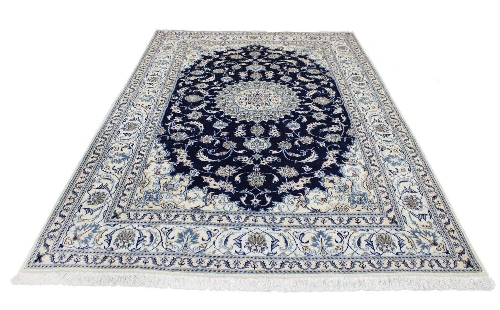 Original Perserteppich Nain | Größe: 297 cm x 196 cm | Material: Hochwertige Wolle und Baumwolle | Muster: Orientalisch mit Blumenmotiven | Zustand: Neu ohne Etikett, sehr sauber | Knotendichte: Handgeknüpft | Florhöhe: Hochflor | Geeignet für Fußbodenheizung | Herkunft: Iran | Stil: Traditionell Persisch/Orientalisch