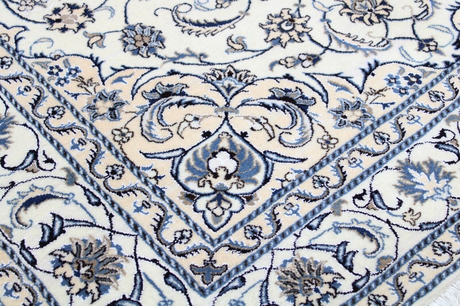 Original Perserteppich Nain | Größe: 299 x 195 cm | Material: Hochwertige Wolle und Baumwolle | Muster: Orientalisch mit Blumenmotiven | Knotendichte: Handgeknüpft | Zustand: Neu ohne Etikett, Top Zustand | Geeignet für Fußbodenheizung | Stil: Traditionell Persisch | Ursprungsregion: Iran | Florhöhe: Hochflor
