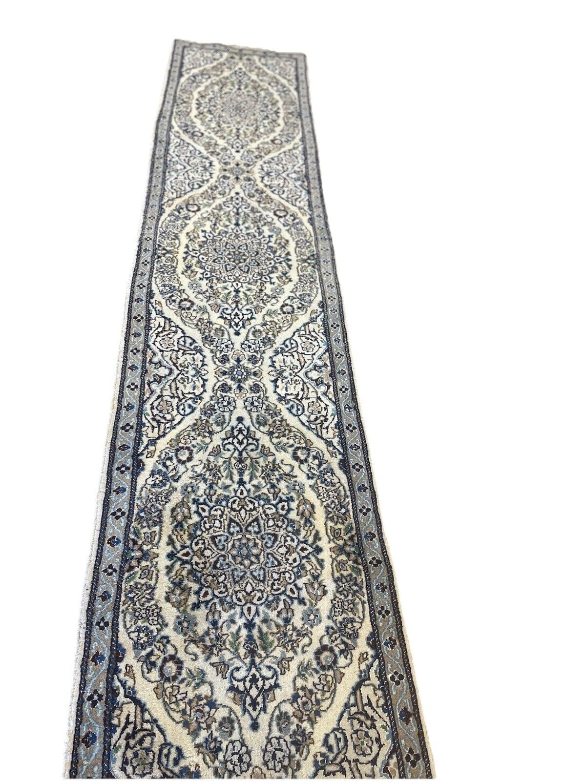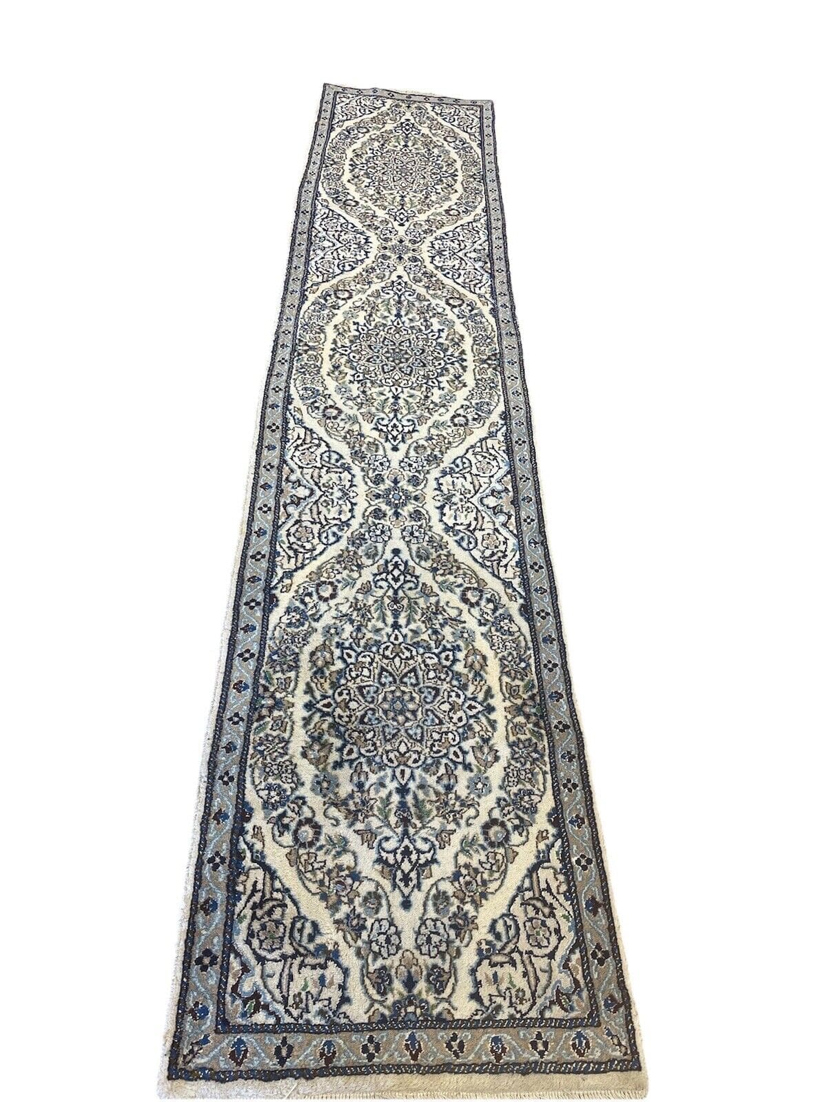 Original Perserteppich Nain 9 LA mit Seide, 310x65cm, 10mm Florhöhe, elegantes orientalisches Design, handgeknüpft, Perserteppich Läufer