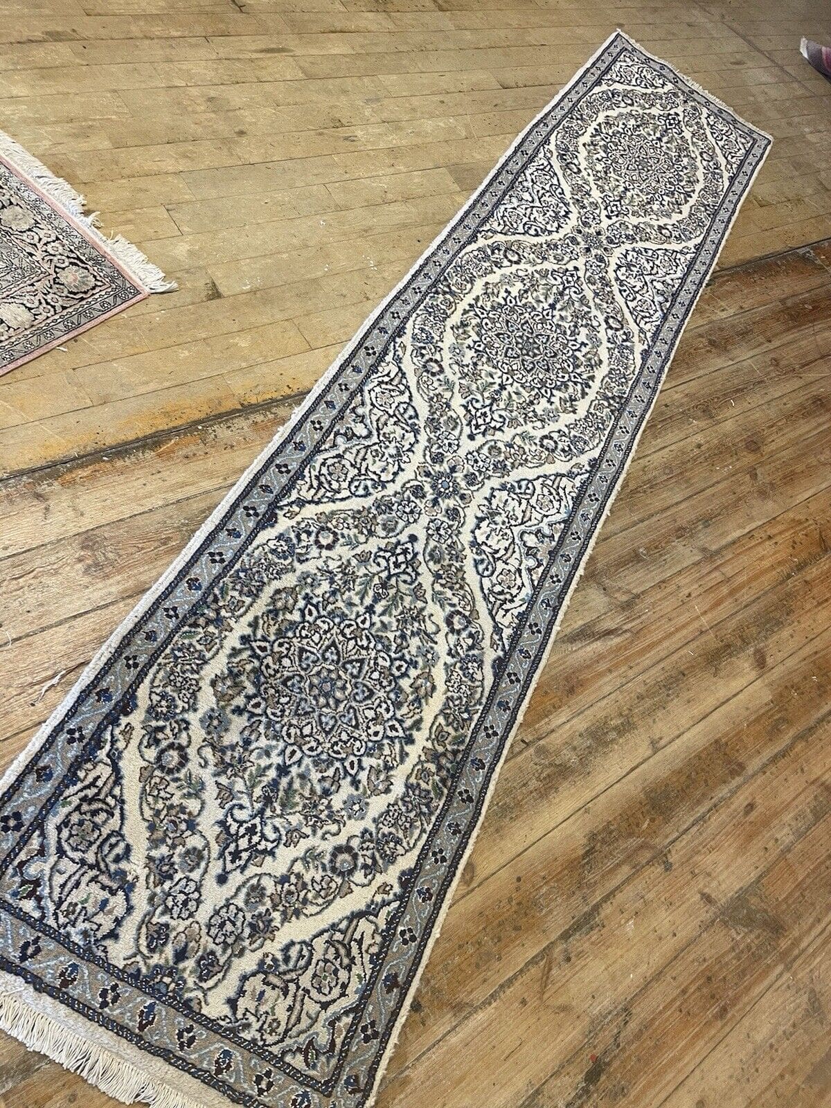 Original Perserteppich Nain 9 LA | Handgeknüpft mit Seide | Größe: 310×65 cm | Florhöhe: 10 mm | Material: Wolle und Seide | Zustand: Neu mit Etikett | Design: Orientalisch, Farbe: Beige | Stil: Traditionell Orientalisch/Persisch | Ideal für Wohnzimmer, Schlafzimmer und Flur
