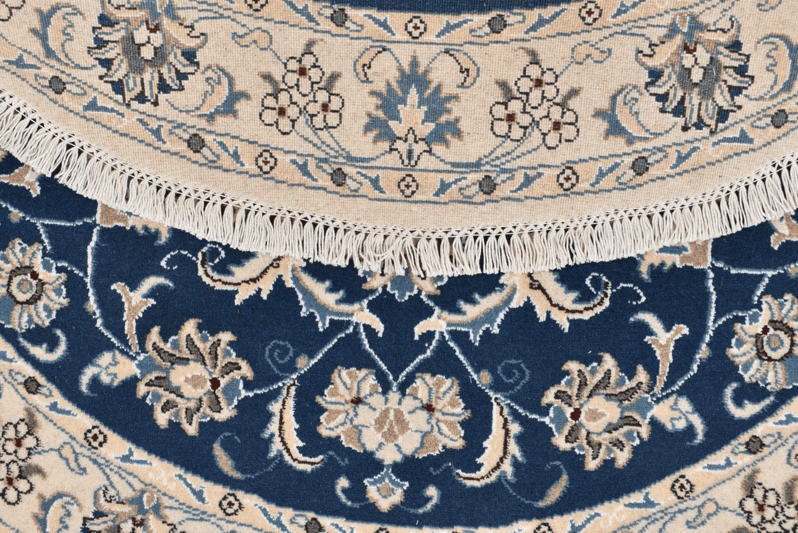 Der Teppich stammt aus Nain, einer Stadt im Iran, die für ihre beeindruckenden Teppichknüpftraditionen berühmt ist. Nain-Teppiche haben ihren Ursprung in der Provinz Isfahan, die für ihre reiche kulturelle Geschichte und ihre erstklassigen Teppiche bekannt ist. Die Tradition des Teppichknüpfens in Nain reicht bis ins 16. Jahrhundert zurück und ist geprägt von den Einflüssen verschiedener Dynastien. Die Teppichknüpfer von Nain haben ihren eigenen, einzigartigen Stil entwickelt, der durch die Verwendung feiner Wolle und komplexer Muster gekennzeichnet ist.