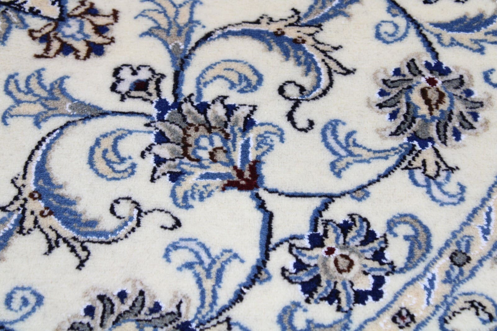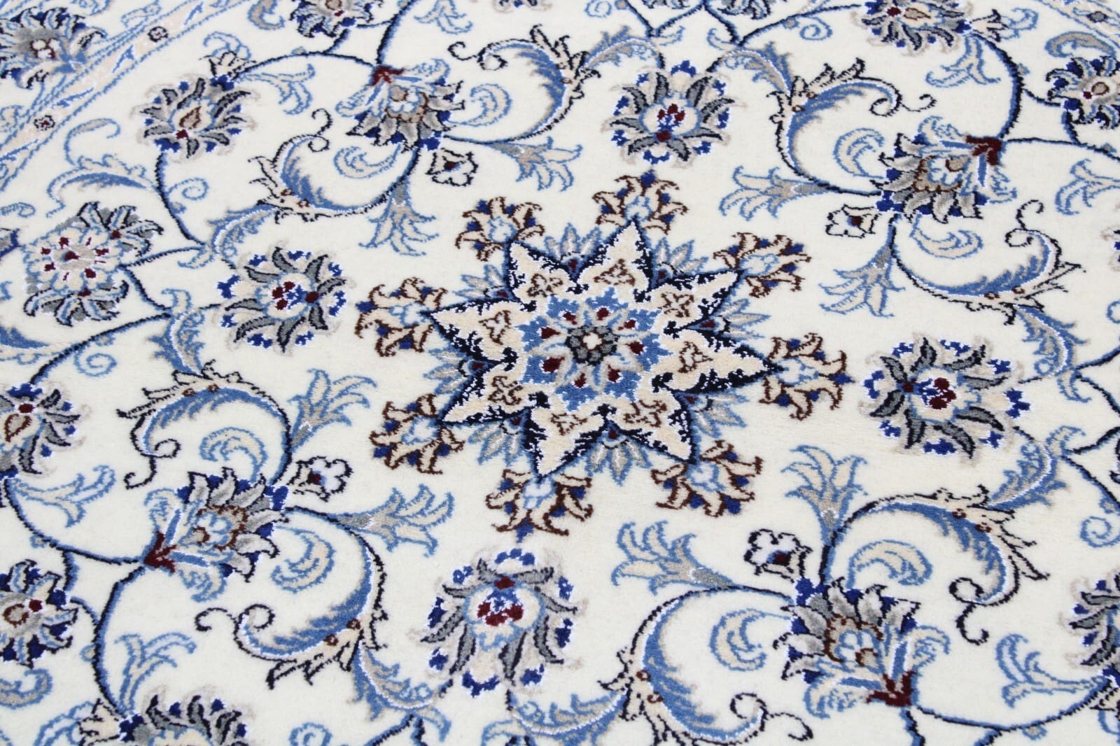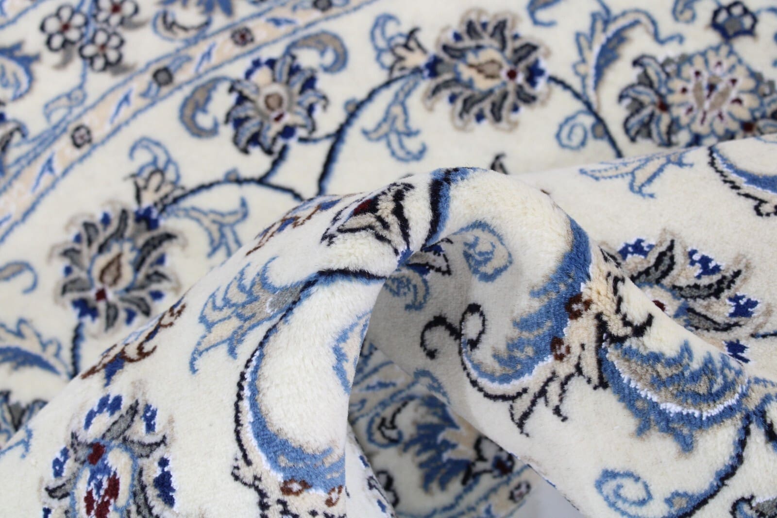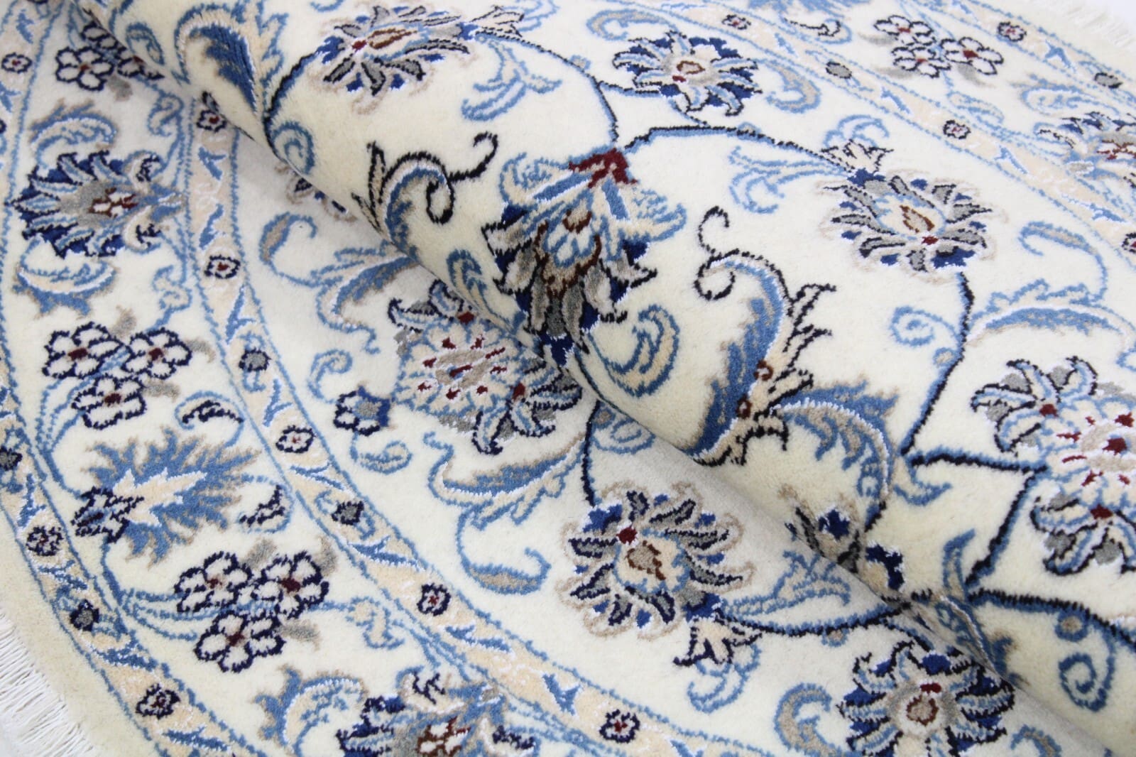 Original Perserteppich Nain Kashmari | Größe: 150 cm x 150 cm | Material: Wolle und Baumwolle | Zustand: Neu mit Etikett | Knotendichte: Handgeknüpft | Muster: Orientalisch mit Blumenmotiven | Stil: Persisch | Farbe: Beige | Geeignet für alle Zimmer | Hochflor und für Fußbodenheizung geeignet | Herkunft: Iran