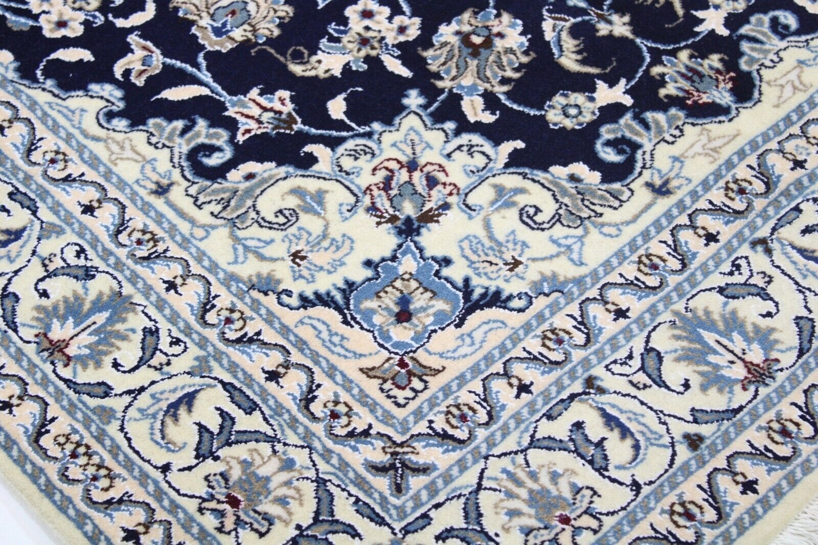 Original Perserteppich Nain Kashmari | Größe: 198 x 144 cm | Material: 100% Wolle | Knotendichte: Handgeknüpft | Zustand: Neu ohne Etikett, Top Zustand | Muster: Orientalisch, Blumen | Florhöhe: Hochflor | Geeignet für Fußbodenheizung | Stil: Traditionell Persisch/Orientalisch | Herkunft: Iran
