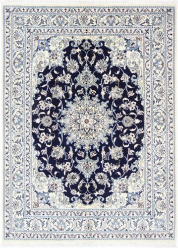Das Design des Nain Kashmari ist geprägt von traditionell persischen Motiven, die oft florale und geometrische Elemente enthalten. Diese Teppiche sind bekannt für ihre sanften Farben und die harmonische Kombination von Blau-, Creme- und Rottönen. Die feinen Details und das harmonische Zusammenspiel der Farben machen ihn zu einem idealen Möbelstück, das sich nahtlos in jede Einrichtung einfügt – sei es im modernen, klassischen oder auch rustikalen Stil. Jedes Muster erzählt eine Geschichte und spiegelt die Kunstfertigkeit der Knüpfer wider, die bei der Herstellung dieses Teppichs zum Einsatz kam.