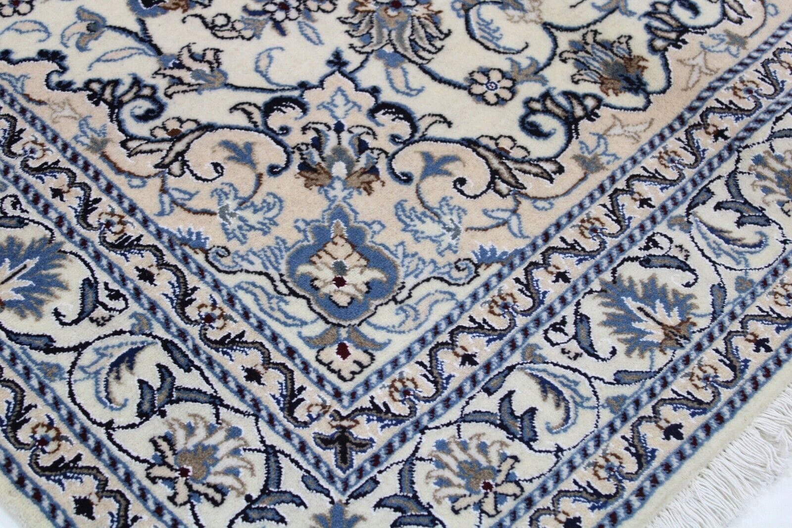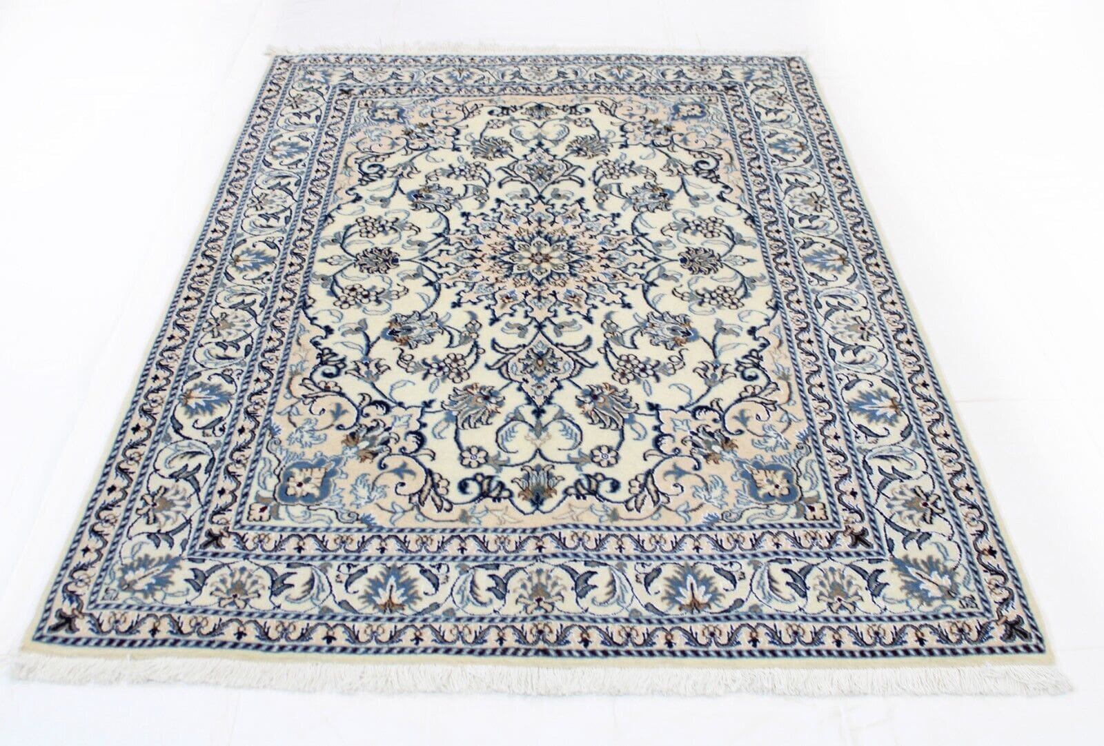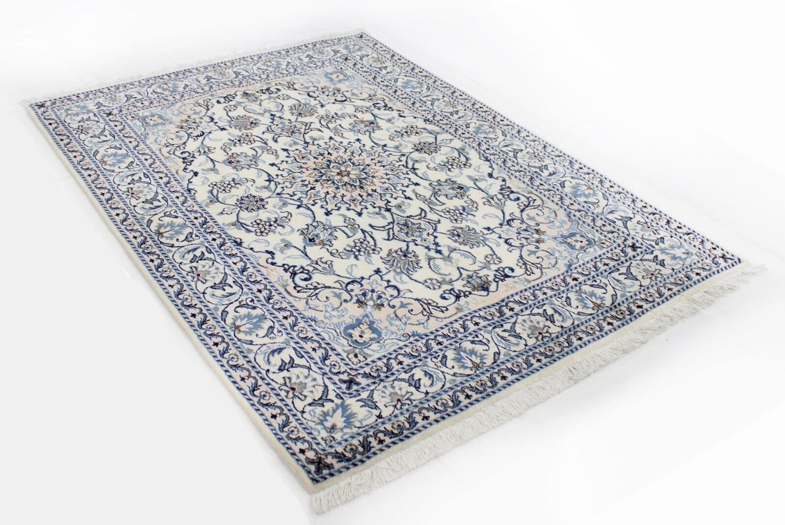 Original Perserteppich Nain Kashmari | Größe: 202 x 146 cm | Material: Hochwertige Wolle und Baumwolle | Knotendichte: Handgeknüpft | Zustand: Neu ohne Etikett | Muster: Orientalisch mit Blumenmotiven | Stil: Traditionell Persisch/Orientalisch | Herkunft: Iran | Besonderheit: Für Fußbodenheizung geeignet | Florhöhe: Hochflor | Geeignet für alle Zimmer