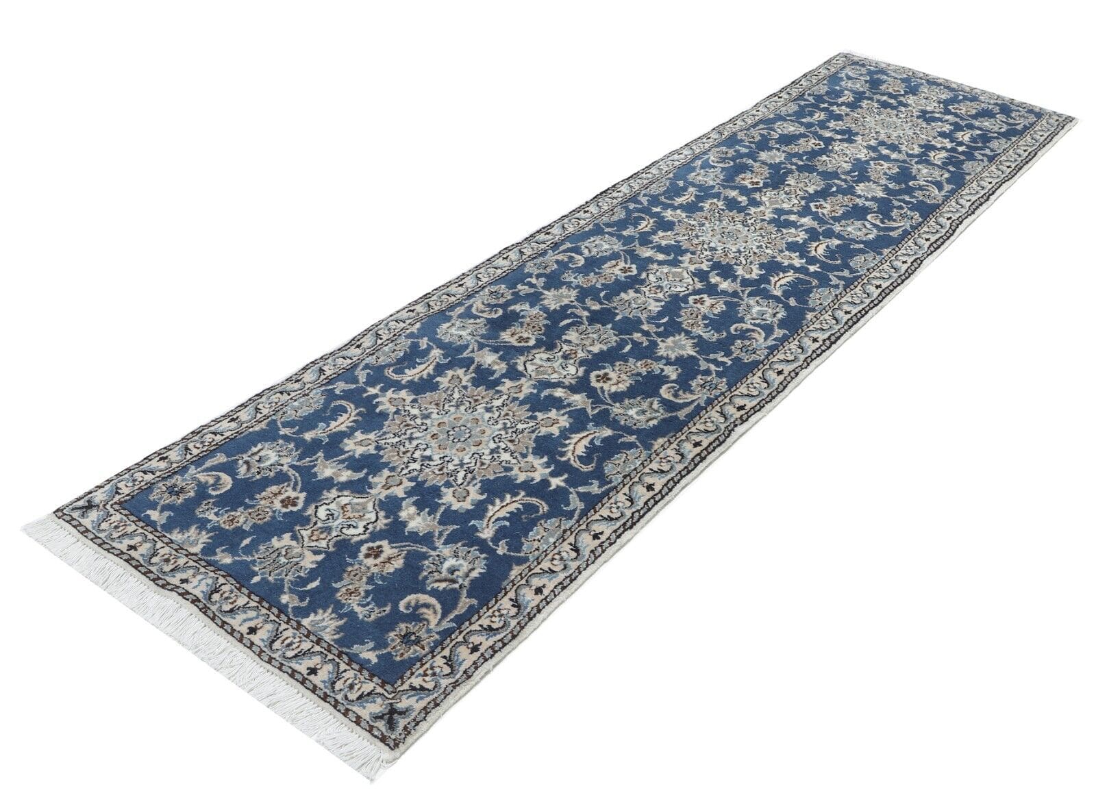 Original Perserteppich Nain Kashmari | Größe: 285 cm x 80 cm | Material: Hochwertige Wolle und Baumwolle | Muster: Orientalisch mit Blumenmotiv | Zustand: Neu ohne Etikett, Top Zustand | Knotendichte: Handgeknüpft, hohe Qualität | Stil: Traditionell Persisch/Orientalisch | Farbe: Blau | Geeignet für Fußbodenheizung | Herkunft: Iran | Florhöhe: Hochflor | Zimmer: Für alle Räume geeignet