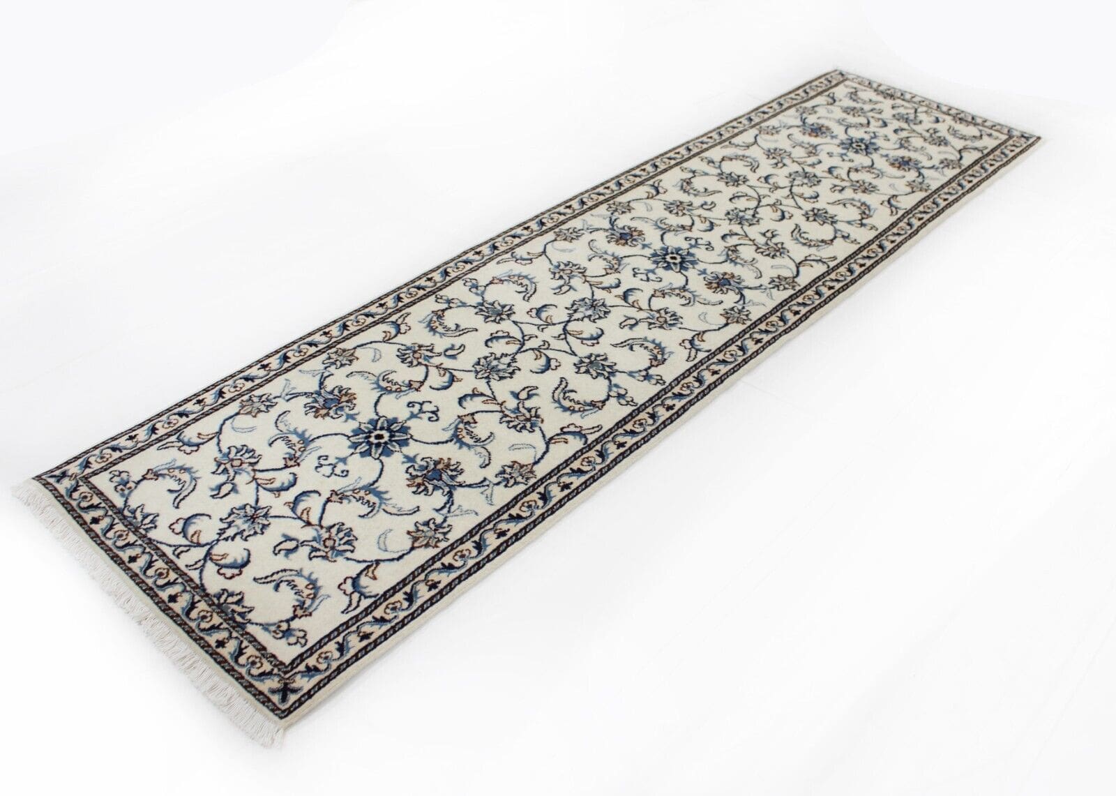 Original Perserteppich Nain Kashmari | Größe: 287 x 79 cm | Material: Hochwertige Wolle und Baumwolle | Zustand: Neu ohne Etikett, Top Zustand | Knotendichte: Handgeknüpft | Muster: Orientalisch mit Blumenmotiven | Stil: Persisch | Herkunft: Iran | Florhöhe: Hochflor | Für Fußbodenheizung geeignet | Rechteckige Form | Geeignet für alle Zimmer