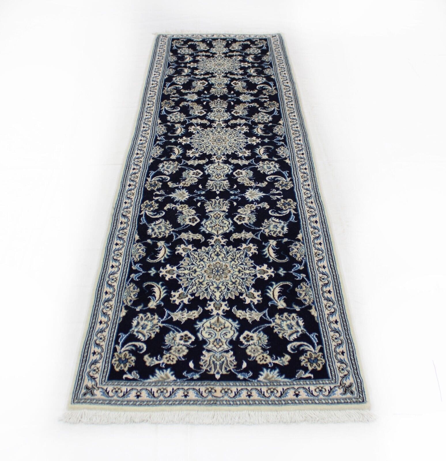 Original Perserteppich Nain Kashmari | Größe: 287 cm x 81 cm | Material: Hochwertige Wolle und Baumwolle | Zustand: Neu ohne Etikett, Top Zustand | Knotendichte: Handgeknüpft | Muster: Orientalisch mit Blumenmotiv | Stil: Persisch | Für Fußbodenheizung geeignet | Herkunft: Iran | Florhöhe: Hochflor | Form: Rechteckig