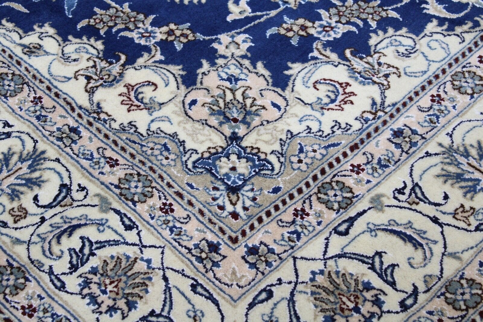 Original Perserteppich Nain Kashmari | Größe: 296 x 197 cm | Zustand: Neu ohne Etikett | Knotendichte: Handgeknüpft | Material: Hochwertige Wolle und Baumwolle | Muster: Orientalisch mit Blumenmotiv | Florhöhe: Hochflor | Geeignet für Fußbodenheizung | Stil: Persisch | Herkunft: Iran | Für alle Zimmer geeignet