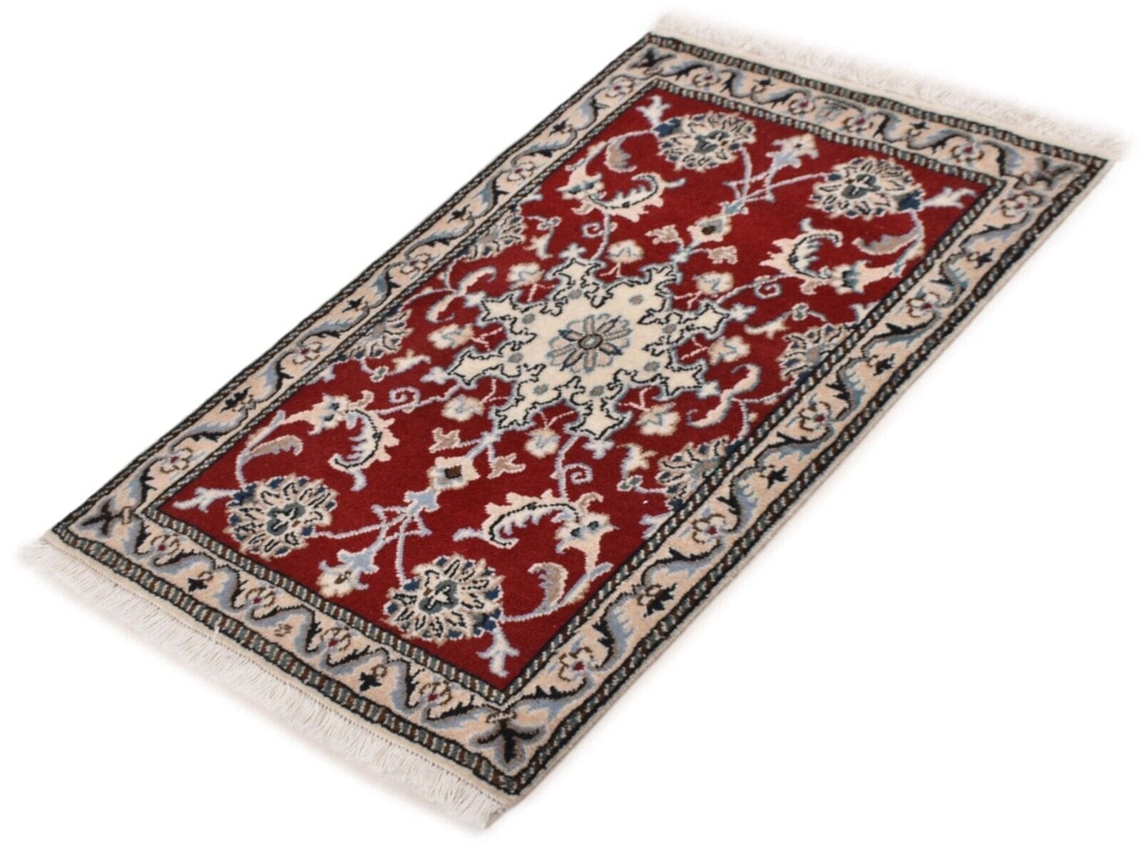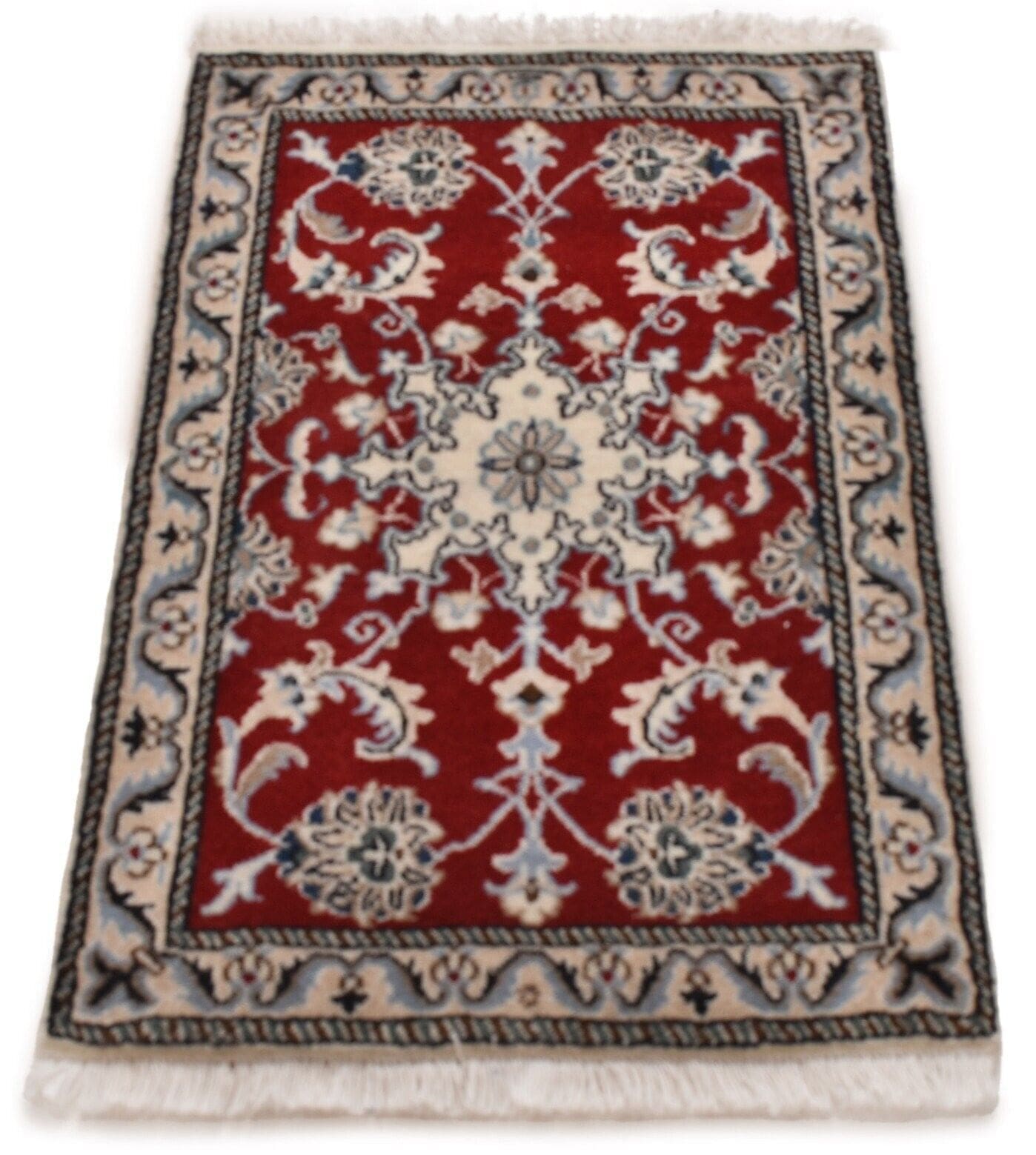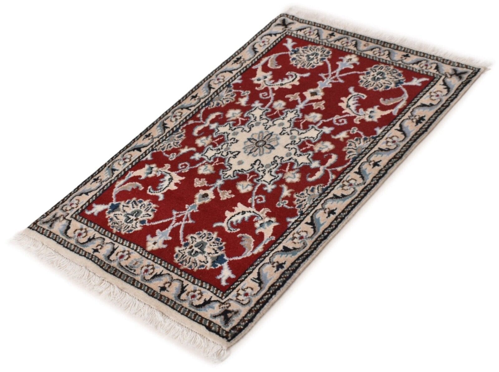 Original Perserteppich Nain Kashmari | Größe: 90 x 60 cm | Material: Wolle und Baumwolle | Zustand: Neu, ohne Etikett | Knotendichte: Handgeknüpft | Muster: Orientalisch mit Blumenmotiven | Stil: Traditionell Persisch/Orientalisch | Für Fußbodenheizung geeignet | Herkunft: Iran | Florhöhe: Hochflor