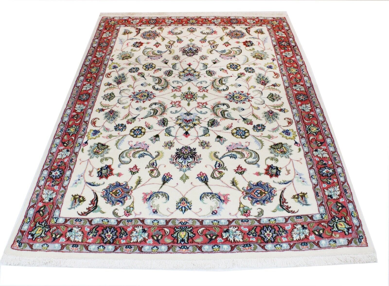 Original Perserteppich Tabriz | Größe: 203 cm x 142 cm | Material: Hochwertige Wolle und Baumwolle | Knotendichte: Handgeknüpft | Muster: Orientalisch mit Blumenmotiven | Zustand: Neu ohne Etikett, sehr sauber | Geeignet für Fußbodenheizung | Stil: Traditionell Persisch/Orientalisch | Herkunft: Iran | Florhöhe: Hochflor