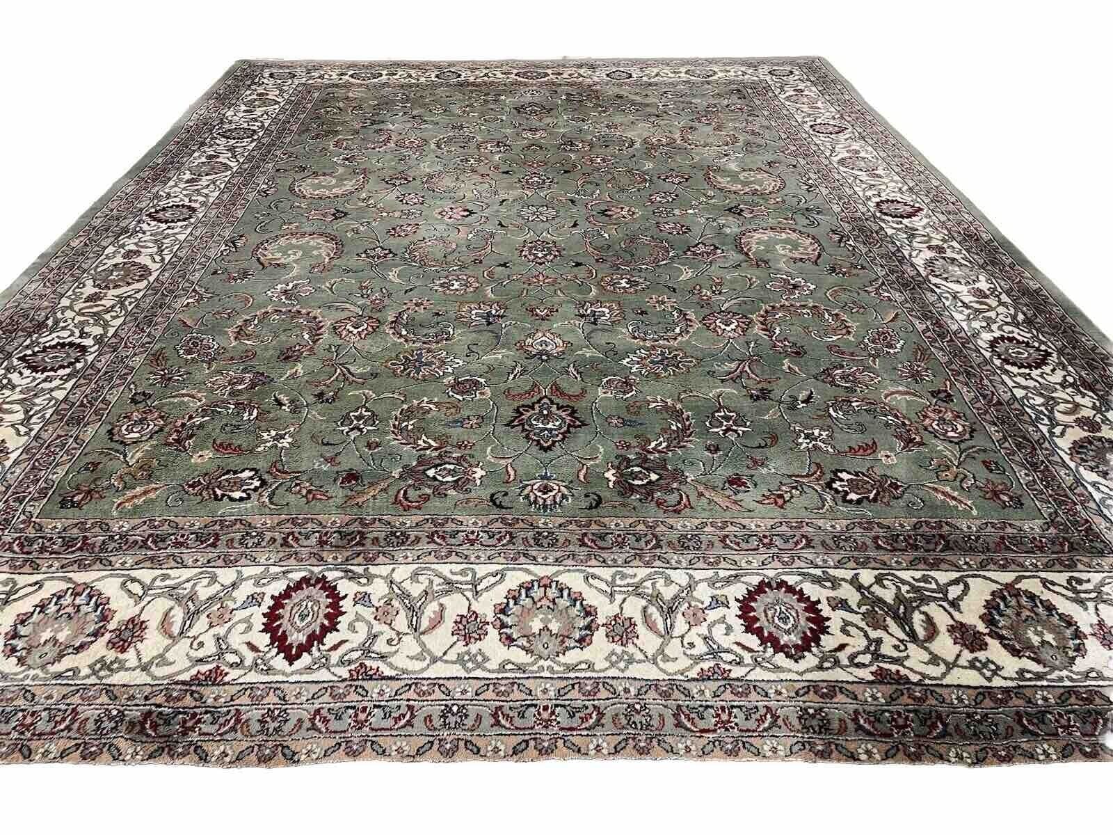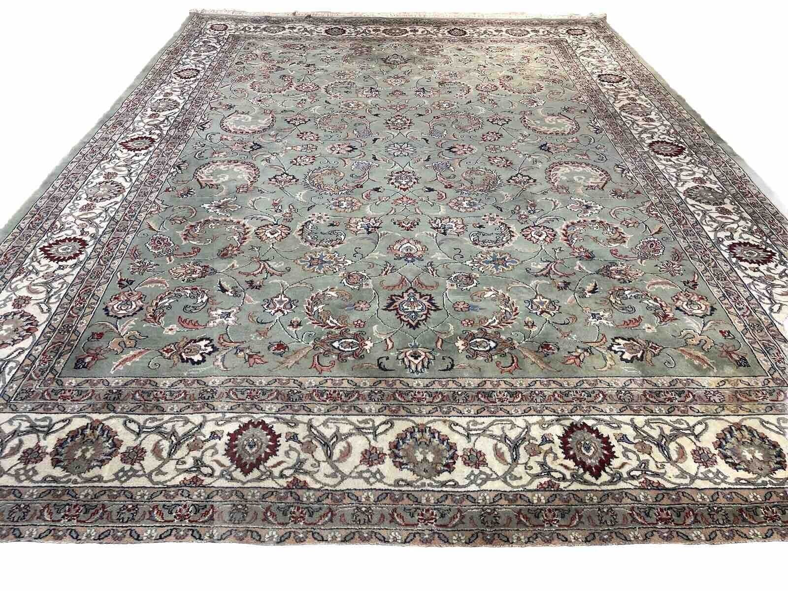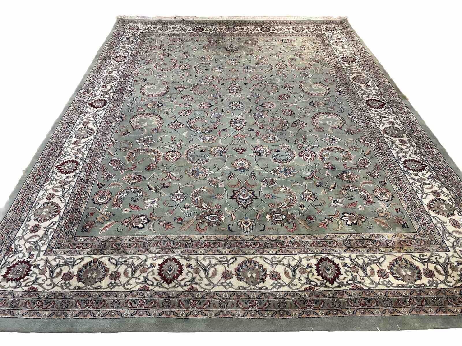 Original Kaschmir Teppich | Handgeknüpft mit reiner Schurwolle | Knotendichte: 350.000 Knoten/m² | Größe: 365 x 275 cm | Farbe: Pastell Grün | Zustand: Neu mit Etikett | Stil: Traditionell persisch | Florhöhe: 14 mm | Geeignet für Fußbodenheizung | Regionales Design: Täbriz | Kettfaden: Baumwolle | Muster: Durchgemustert | Form: Rechteckig