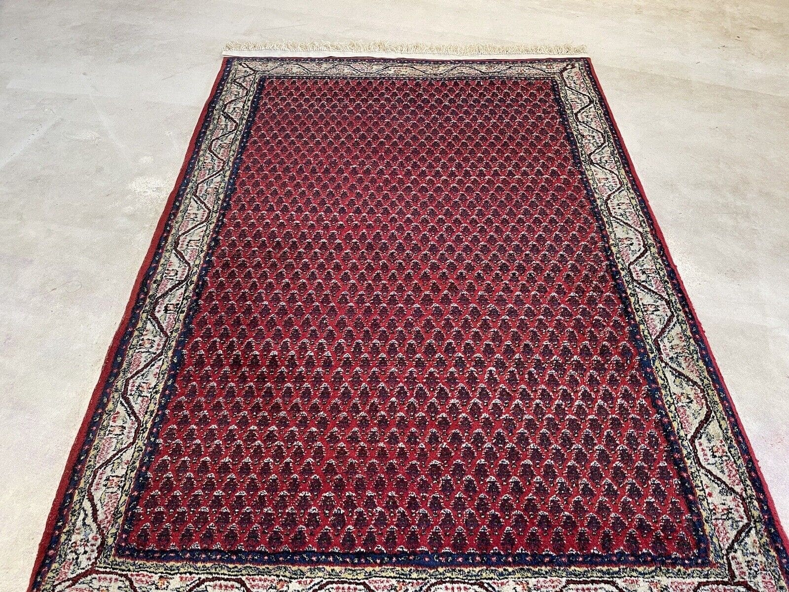 Handgeknüpfter Sarough Mir Teppich | Größe: 165×120 cm | Material: Reine Schurwolle | Knotendichte: Hochwertige Verarbeitung | Muster: Geometrisch mit Medallion | Zustand: Gebraucht, generalüberholt | Florhöhe: 1-3 cm | Geeignet für Fußbodenheizung | Stil: Traditionell Persisch/Orientalisch | Alter: Ca. 30-50 Jahre