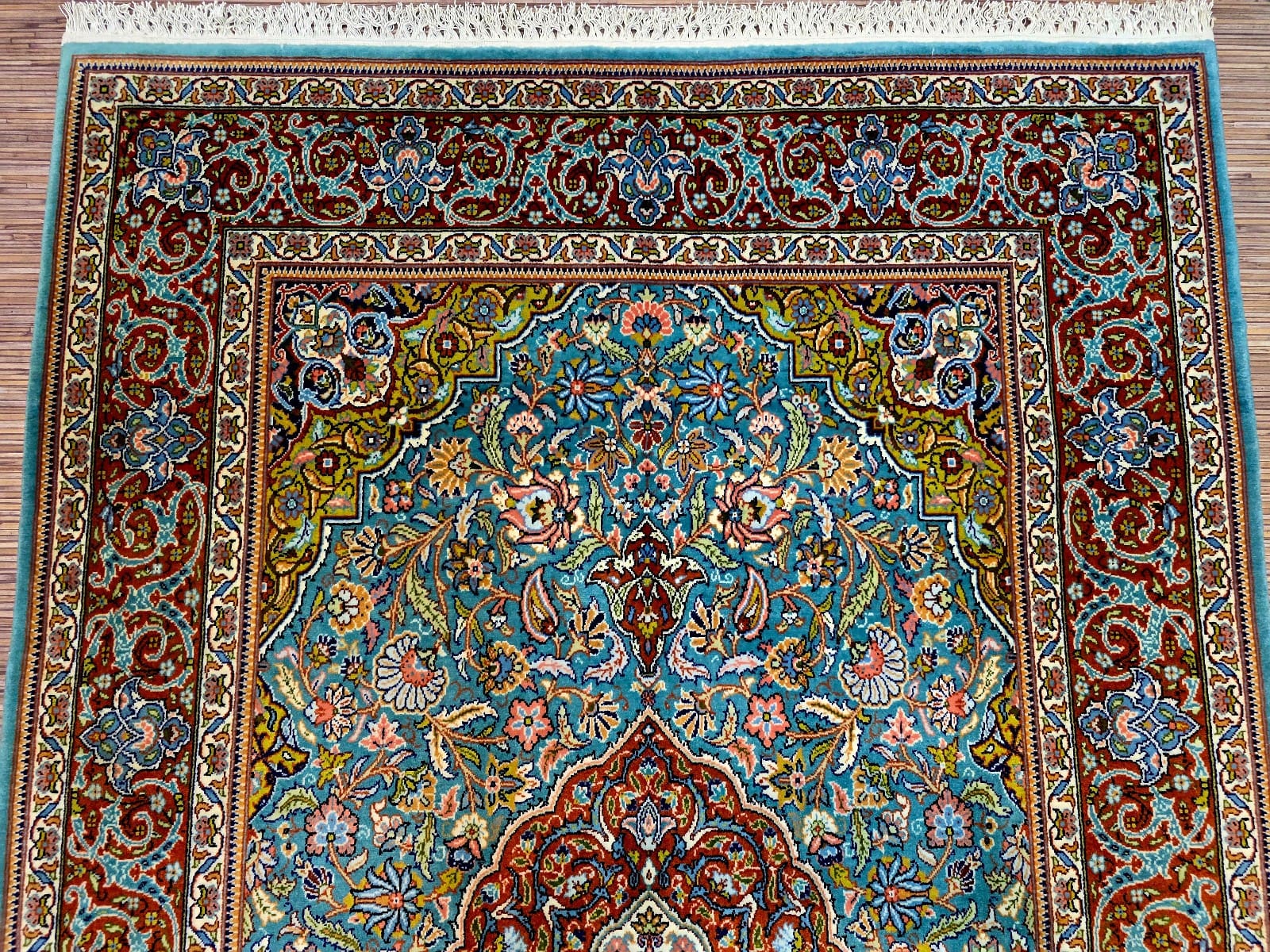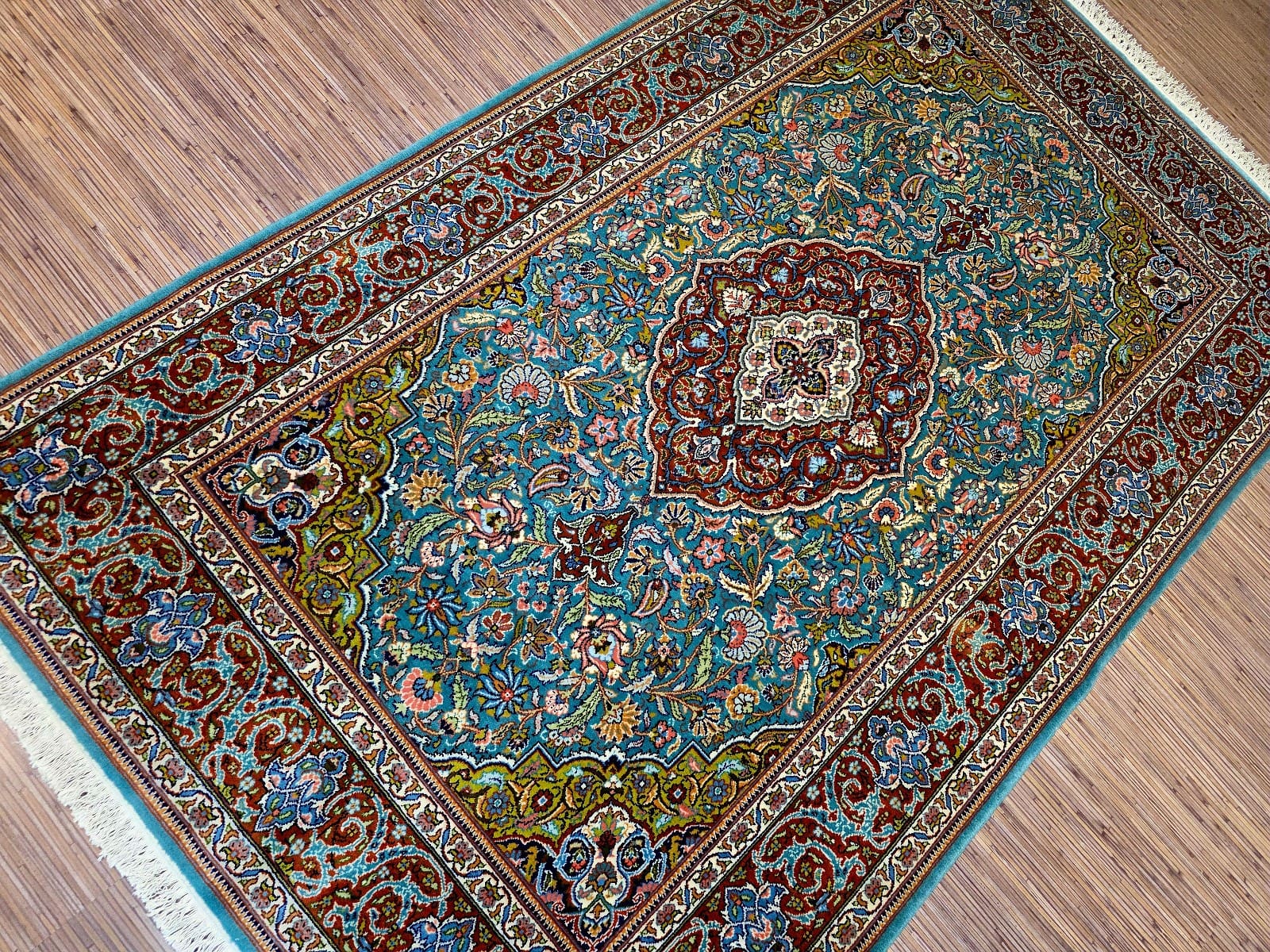 Handgeknüpfter Orientalischer Hereke Teppich | Zustand: Sehr gut | Material: Schurwolle auf Baumwolle | Größe: 206 x 127 cm | Herkunft: Türkei | Farbe: Türkies