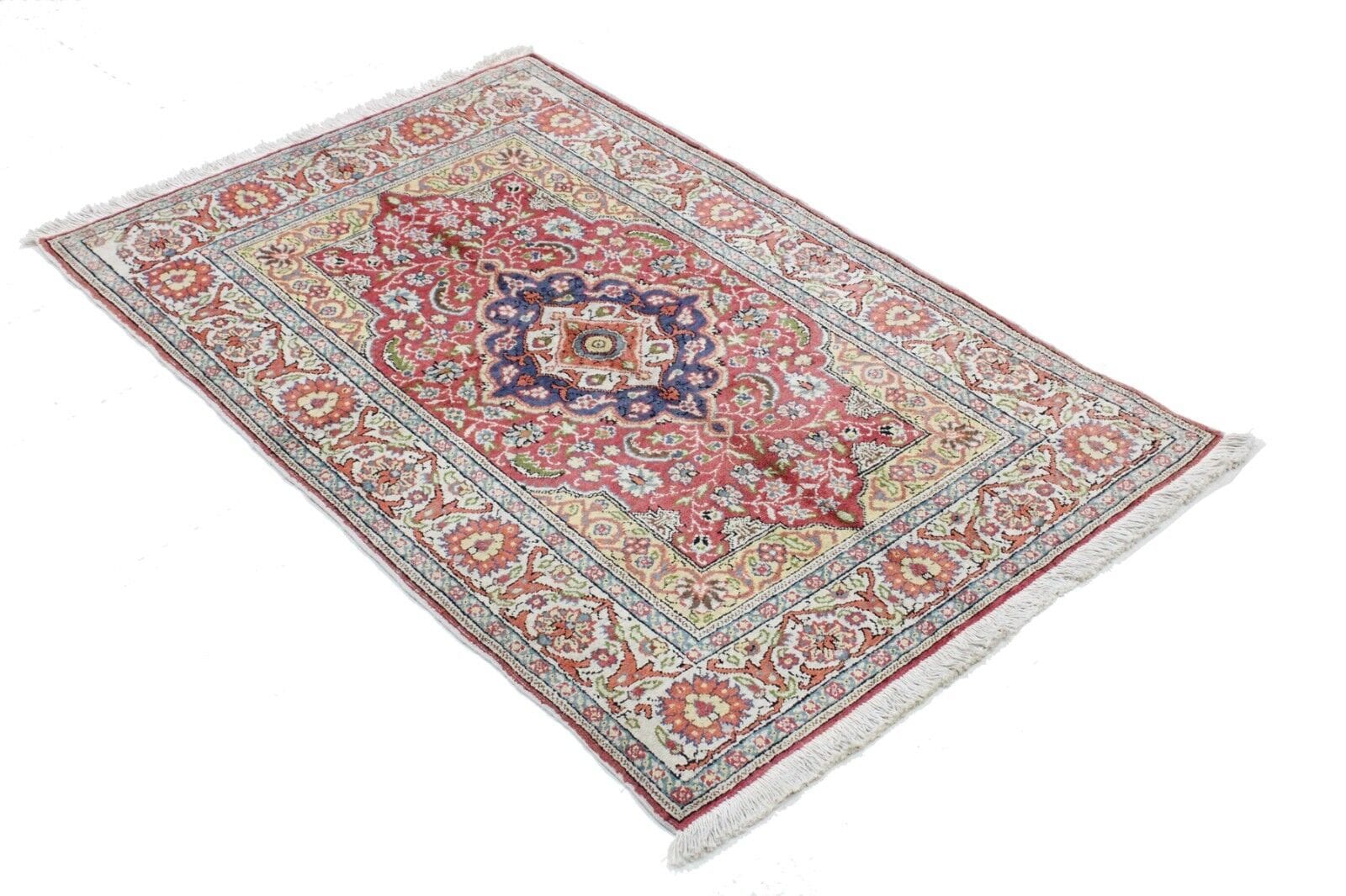 Original Türkischer Teppich Kaisery | Größe: 142 x 88 cm | Material: 100% Baumwolle, 100% Seide | Muster: Geblümt | Zustand: Top Zustand – Top Qualität | Epoche: Spätes 20. Jahrhundert (1980-1989) | Herstellung: Handgeknüpft | Geeignet für Fußbodenheizung | Florhöhe: Normal | Regionales Design: Kaisery | Farbe: Mehrfarbig | Für alle Zimmer geeignet | Umweltfreundlich und waschbar