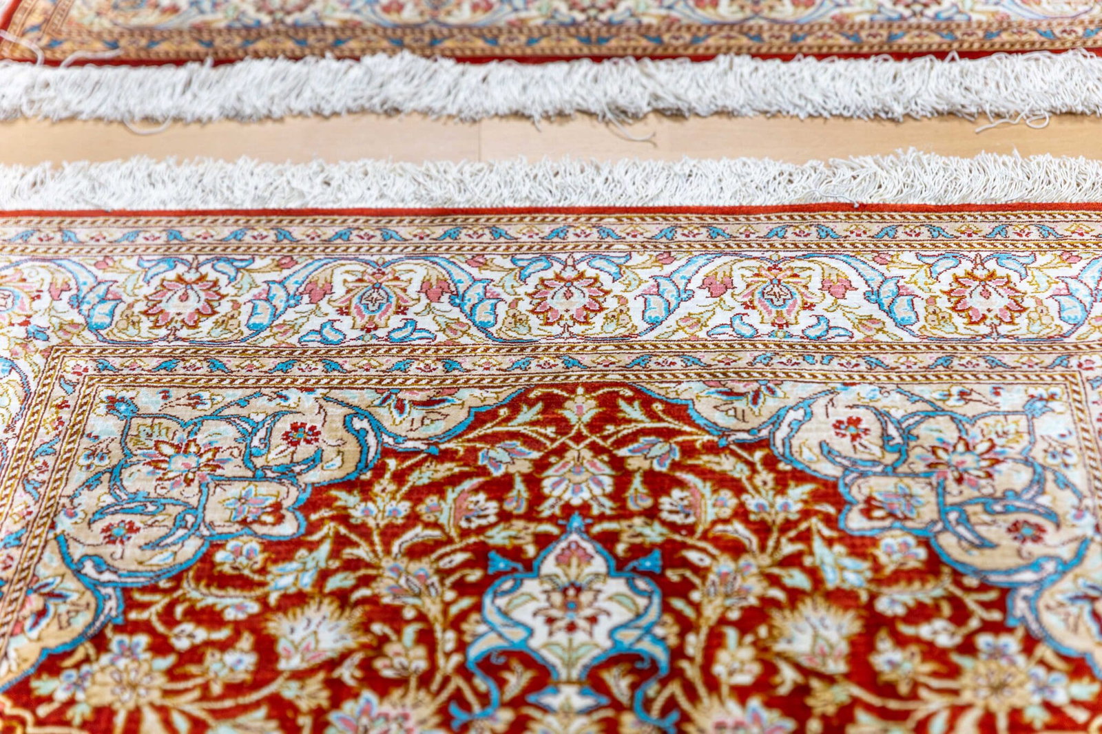 Die Teppiche stammen aus Qom (Ghom) im Iran, einer der renommiertesten Zentren für feinste Seidenteppiche weltweit. Qom-Teppiche sind bekannt für ihre außergewöhnliche Präzision, luxuriöse Materialien und kunstvolle Ausarbeitung und zählen zu den wertvollsten Orientteppichen überhaupt.