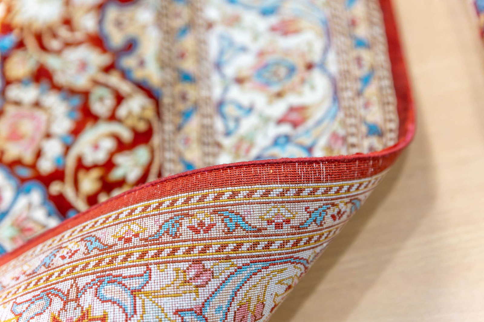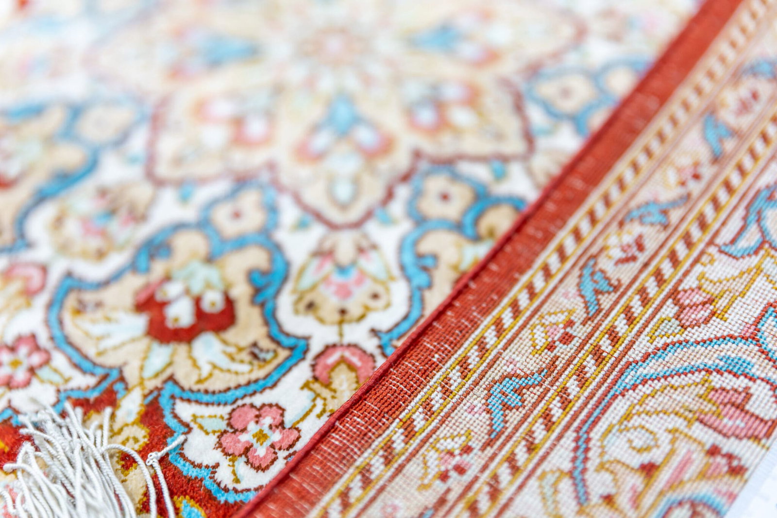 Seide auf Seide bedeutet, dass sowohl der Flor als auch die Kette und der Schuss vollständig aus Seide bestehen. Dies ist die hochwertigste und exklusivste Ausführung bei Orientteppichen.