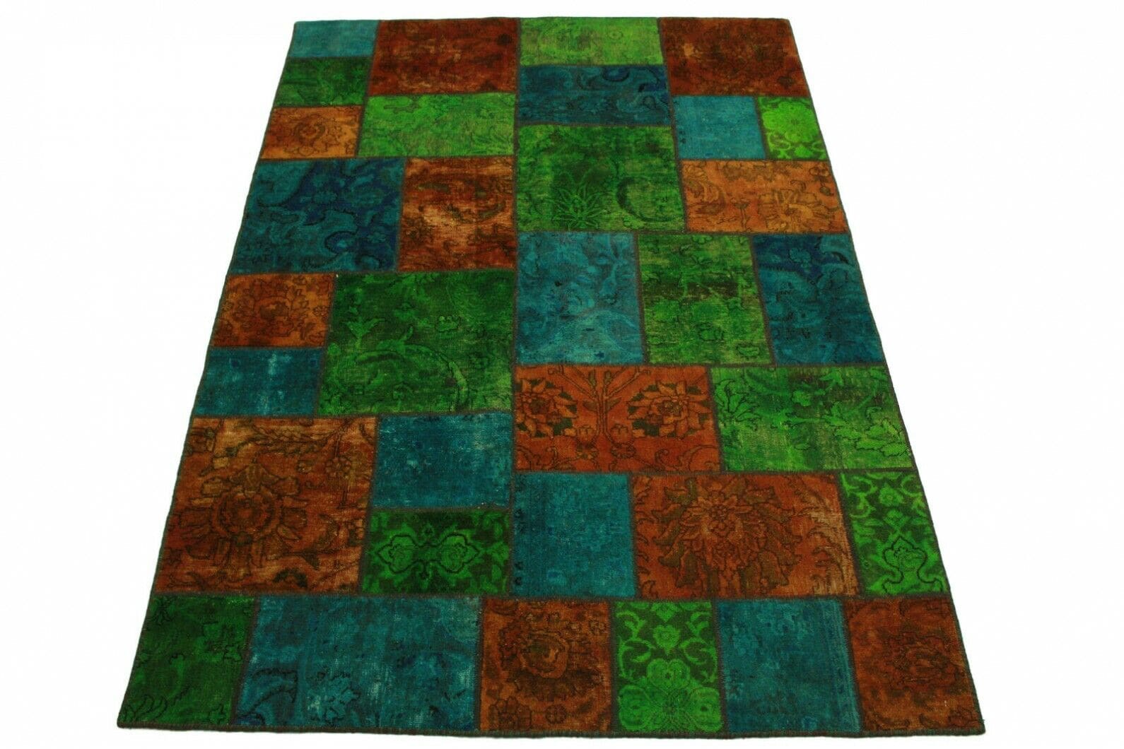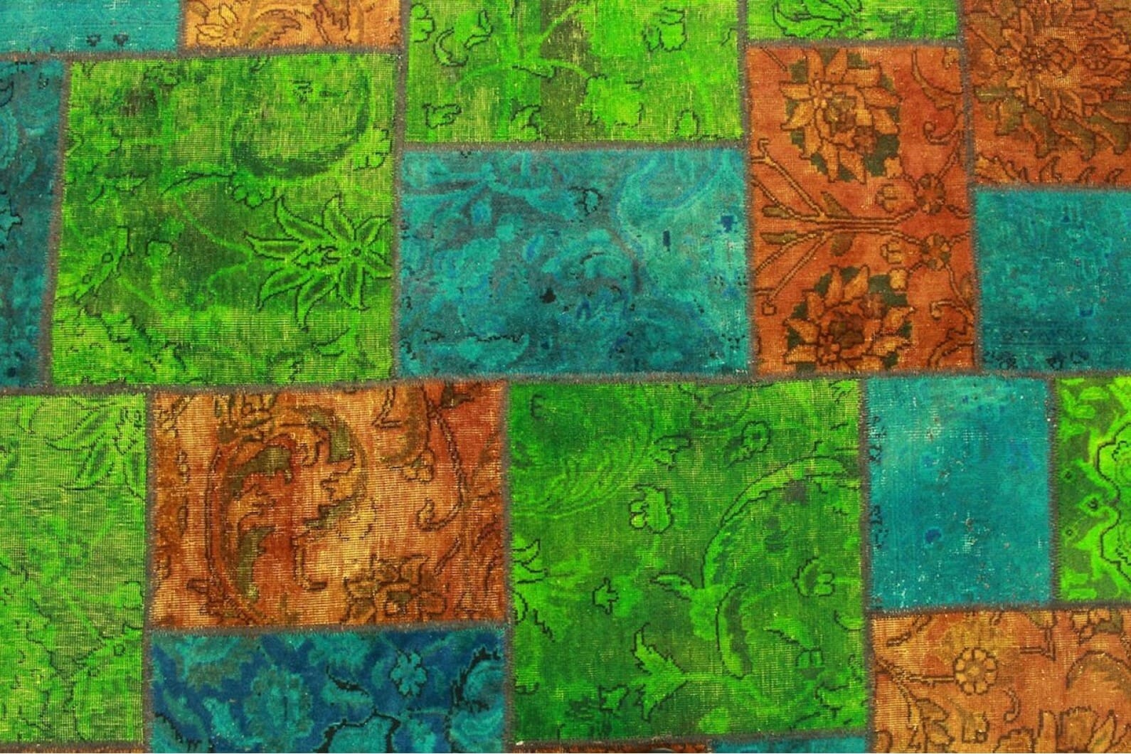 Patchwork Orientteppich 240x163cm Orange Grün Türkis handgeknüpft
