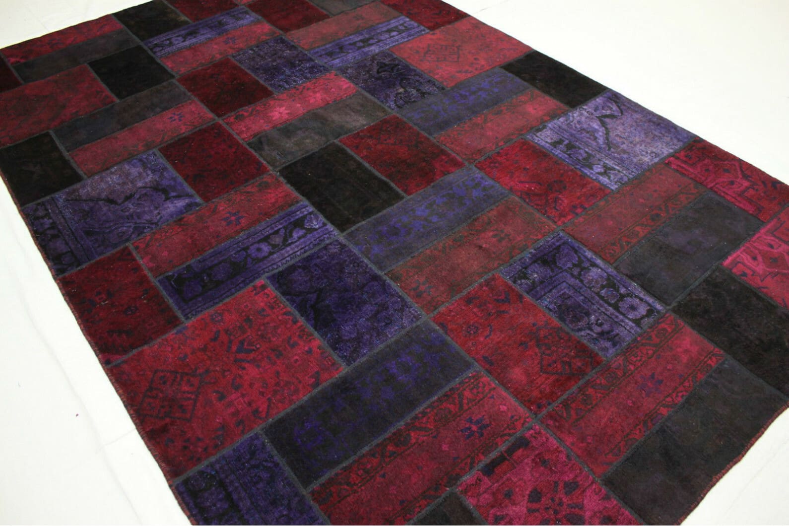 Handgeknüpfter Patchwork Orientteppich | Größe: 310×202 cm | Material: Hochwertige Wolle mit Baumwoll-Kettfaden | Muster: Auffälliges Patchwork-Design in Rot, Lila, Pink | Zustand: Neu mit Etikett | Herkunft: Orient | Stil: Modern und Vintage | Für Fußbodenheizung geeignet | Alter: 20 – 50 Jahre