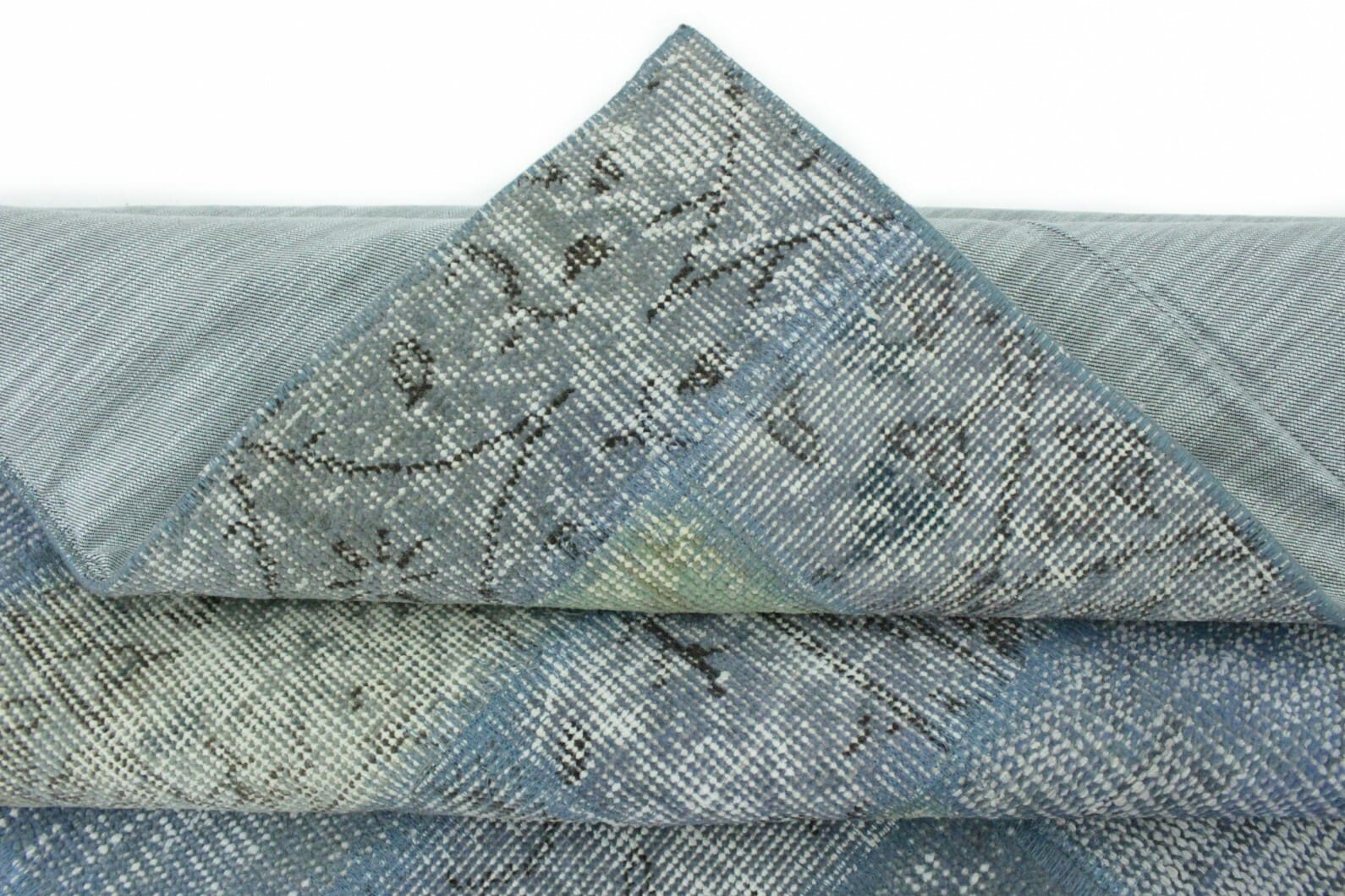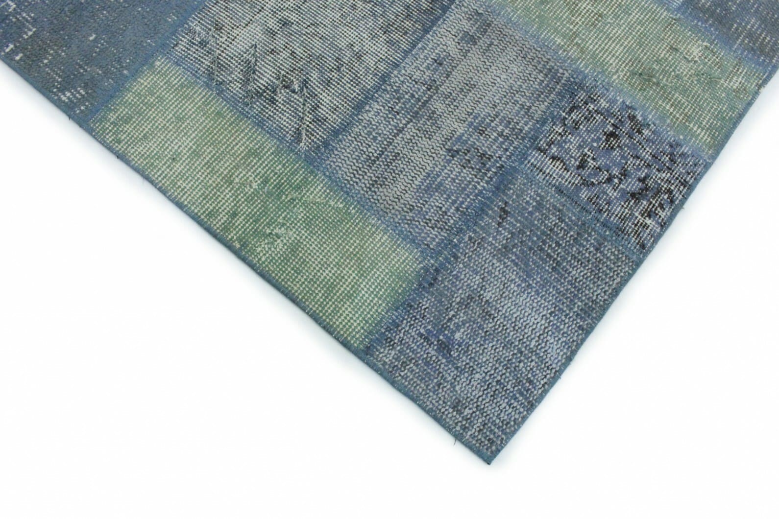 Patchwork Orientteppich 3×2,1m Grau Grün Blau – handgeknüpft