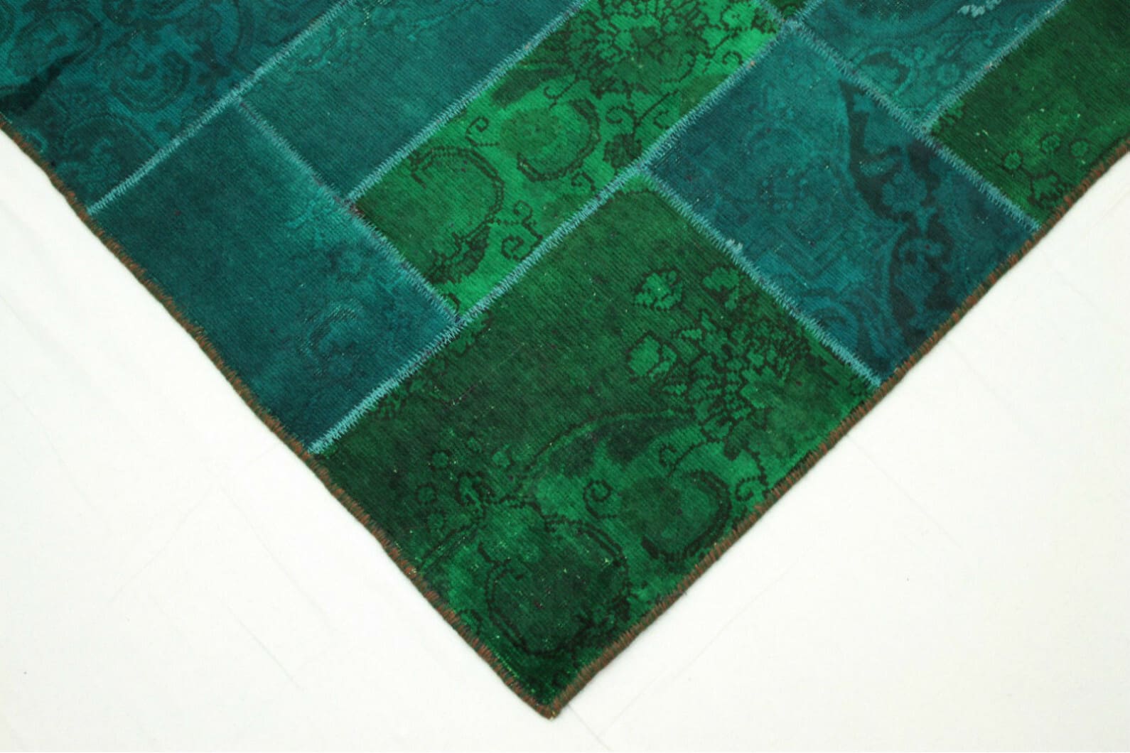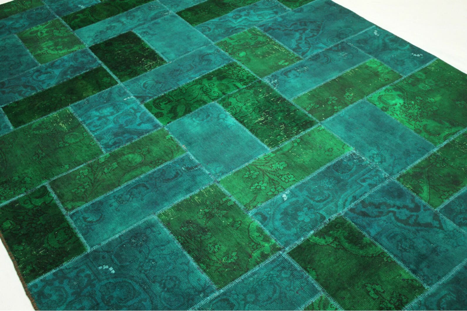 Patchwork Orientteppich Grün Türkis 307x199cm handgeknüpft