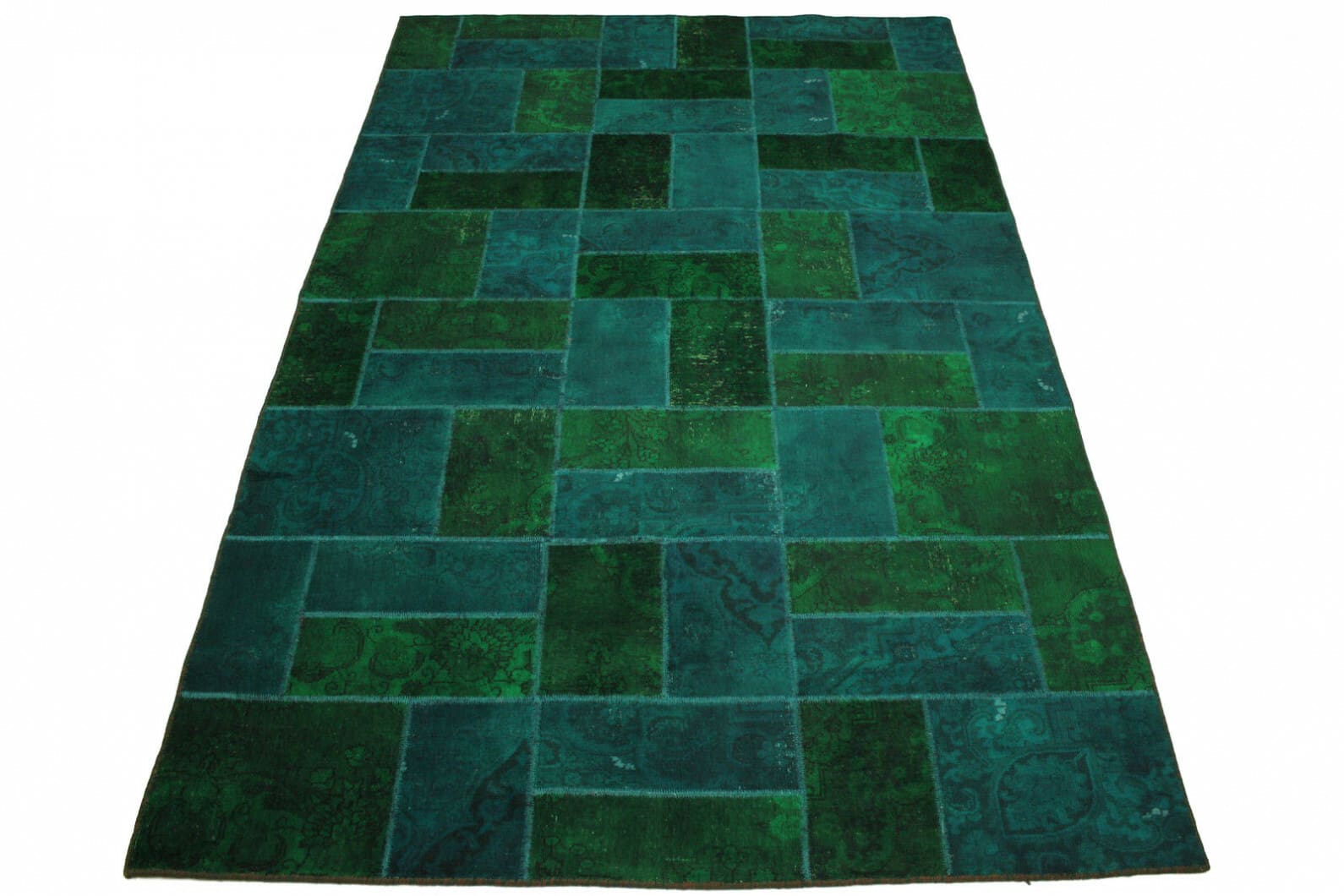 Patchwork Teppich in Grün Türkis | Knotendichte: Handgeknüpft | Material: Handgesponnene Wolle & Baumwolle | Größe: 307×198 cm | Zustand: Neu mit Etikett | Herkunft: Orient | Stil: Modern & Vintage | Für Fußbodenheizung geeignet | Geeignet für alle Zimmer